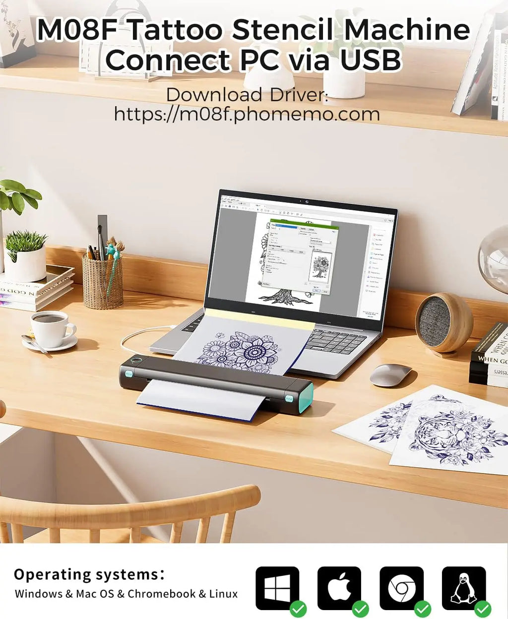 Our M08F wireless thermal printer supports Windows 7 & Mac OS 10 and above, ChromeOS