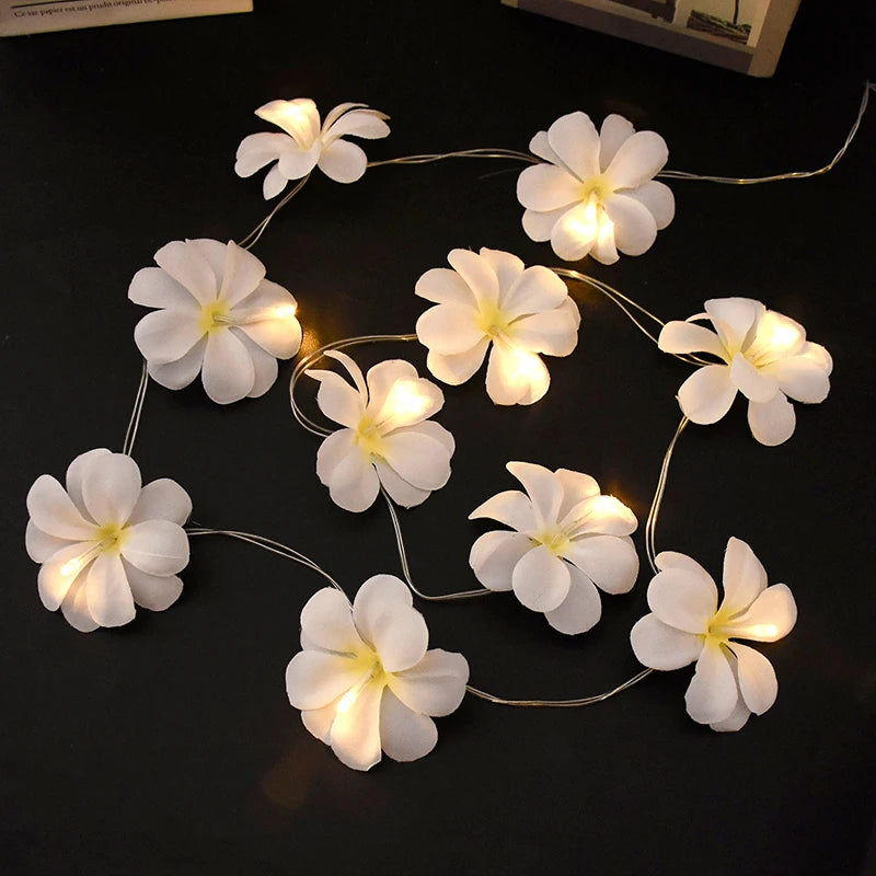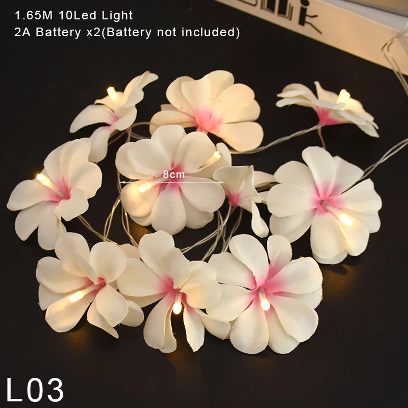 Plumeria String Lights Artificial Frangipani Gardenia Led Lights String Battery Operated for Home Garden Wedding Party Decor