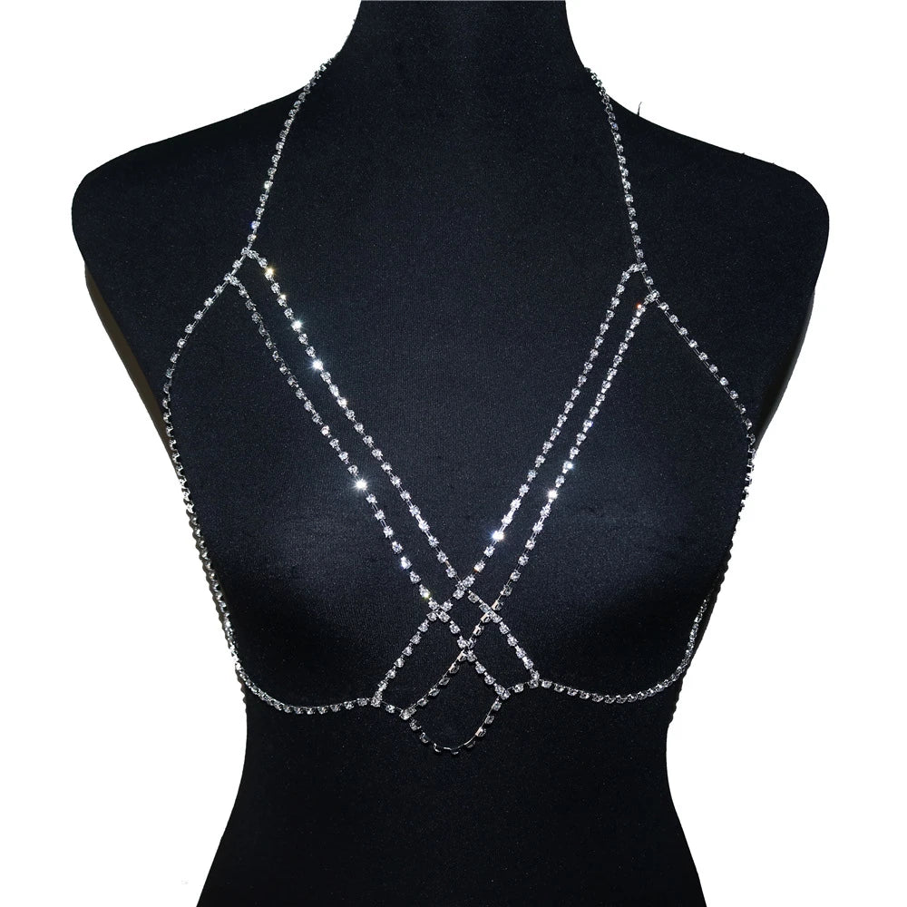 Sexy Shiny Crossed Network Rhinestone Bra Body Chain Exaggerated Women's Crystal Bikini Bra Chain Valentine's Day Gift