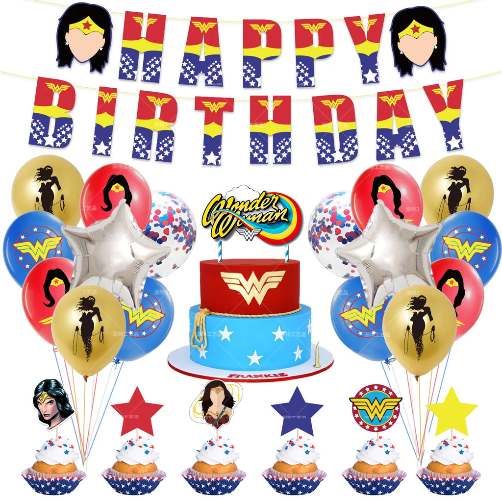 Superhero Theme Kid Birthday Balloon Party Decoration Wonders Woman Banner Cake Card Set Baby Shower Globos Party Event Supplies