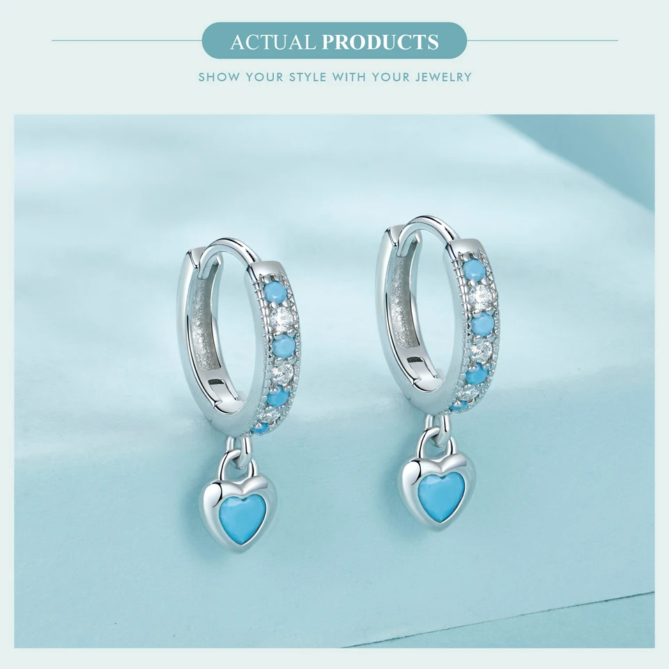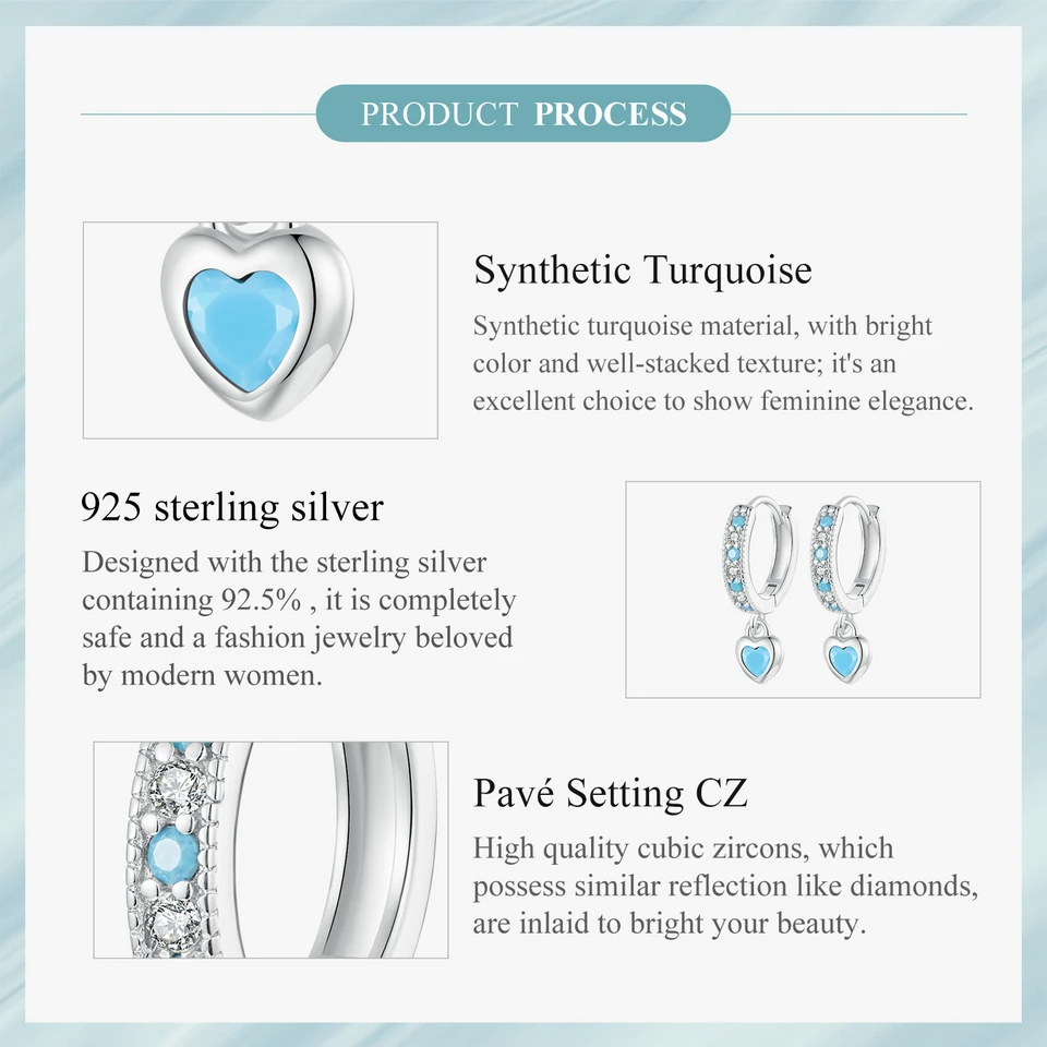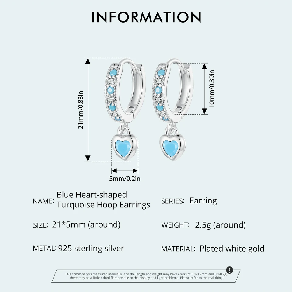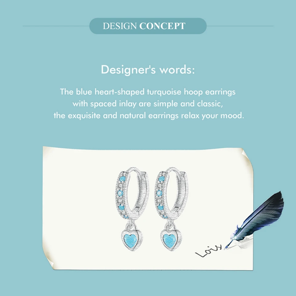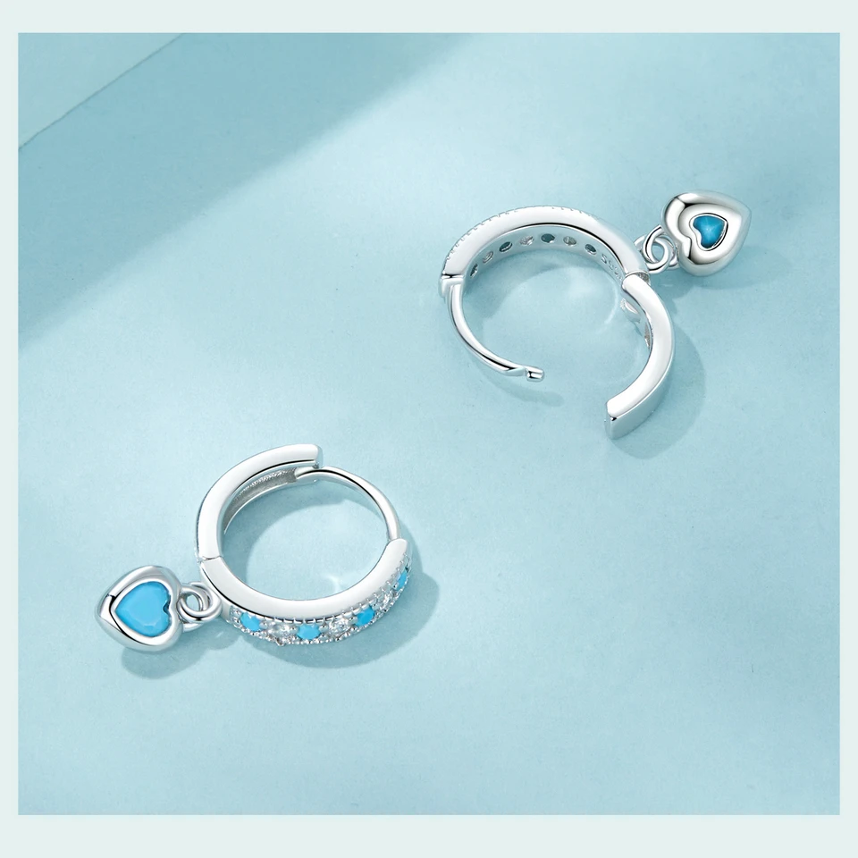 Certificate Number: WOSTU 925 Sterling Silver Blue Heart-shaped Turquoise Hoop Earrings