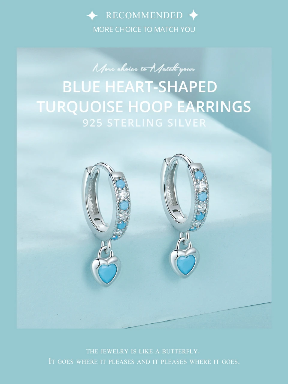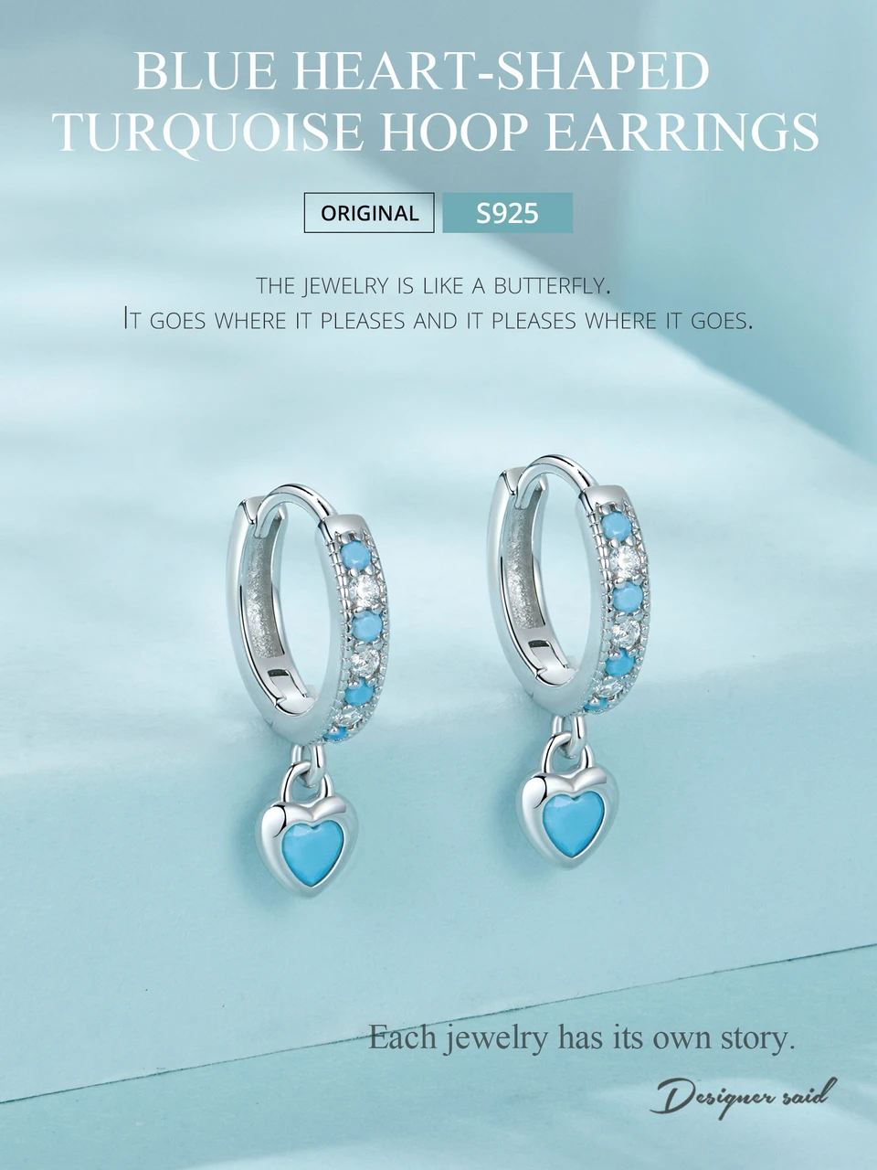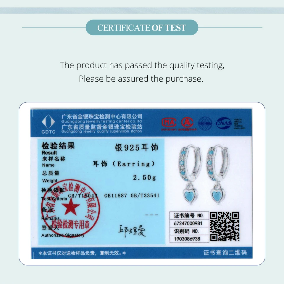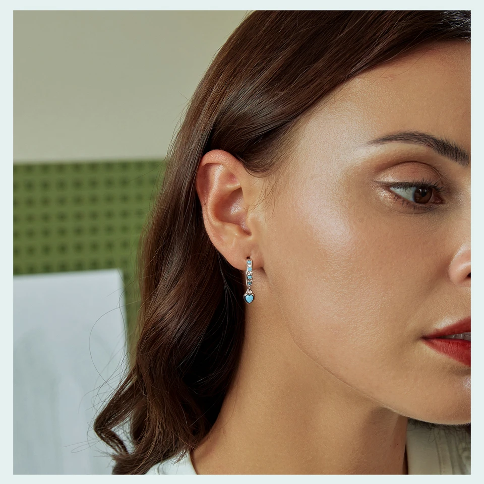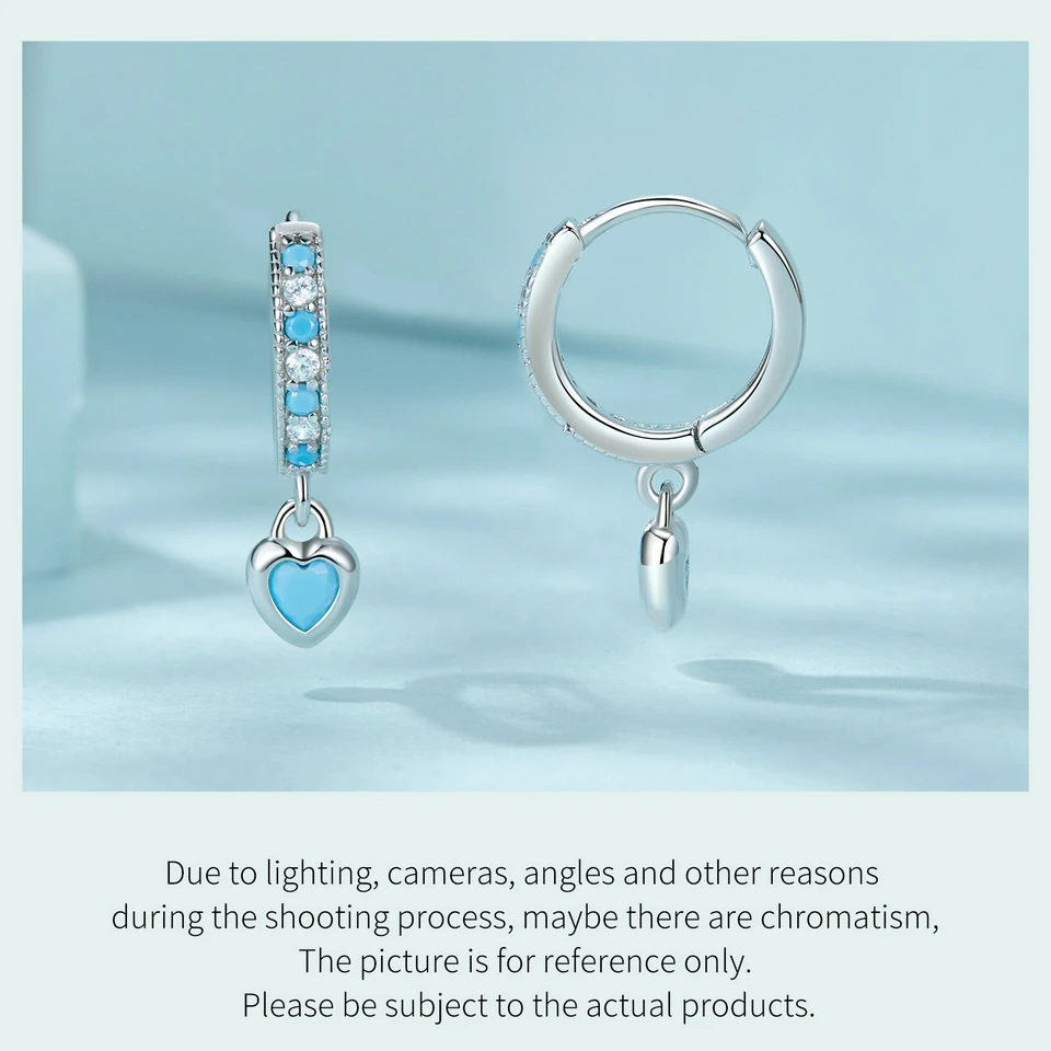 Certificate Number: WOSTU 925 Sterling Silver Blue Heart-shaped Turquoise Hoop Earrings