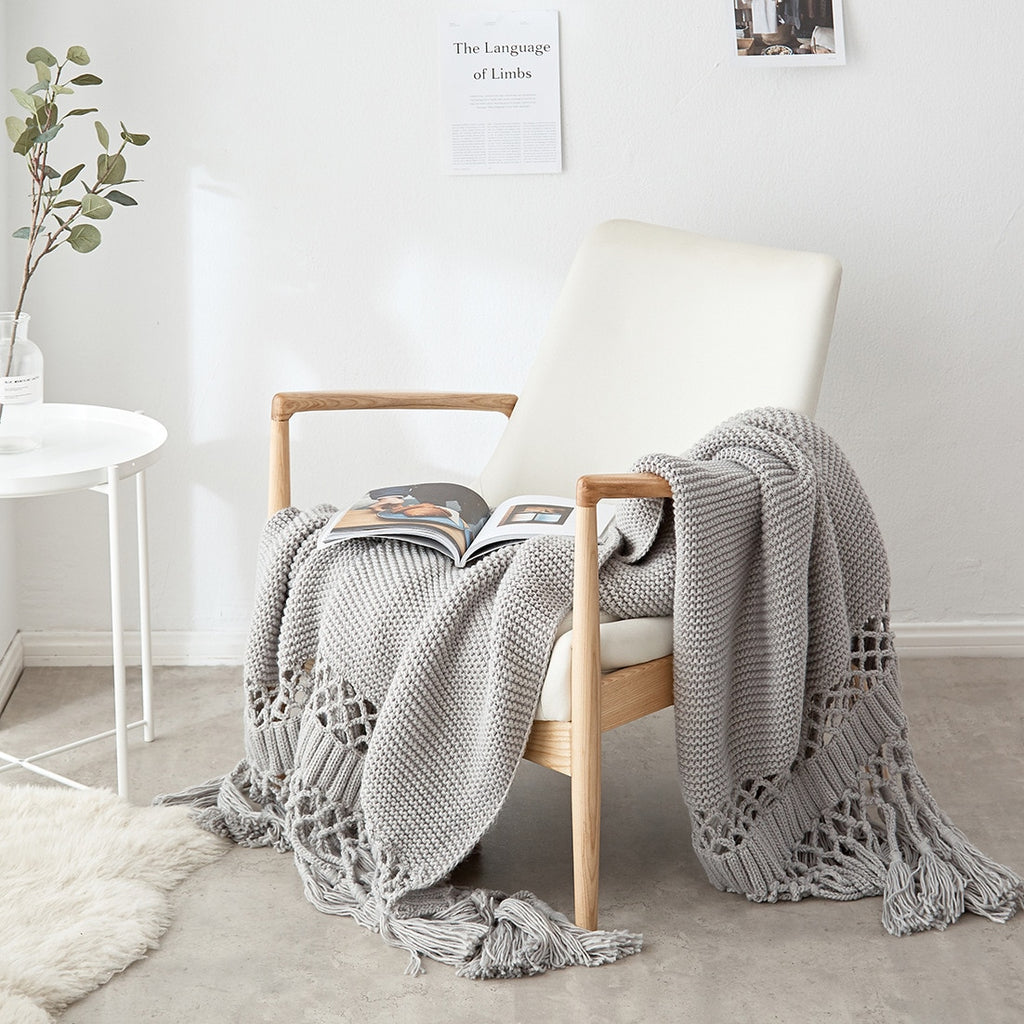 Decken für Betten Handgestrickte Sofadecke Fotorequisiten Quaste Gewichtsdecke Klimadecke Grobstrickdecke
