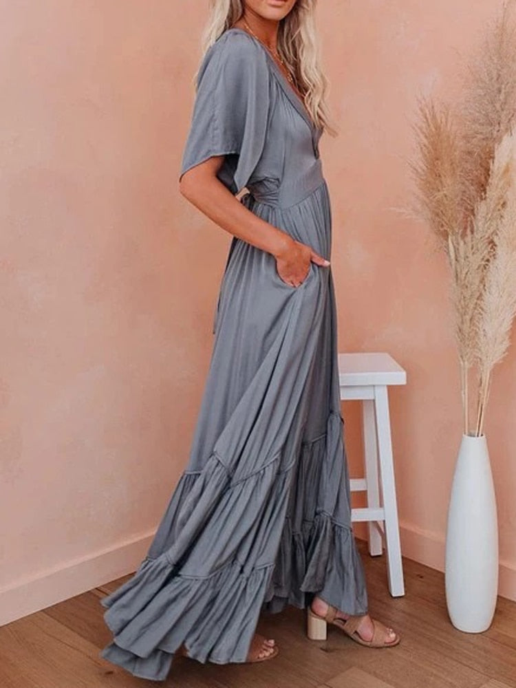 Flounced Edge Maxi Dresses for Women 2022 Maternity Short Sleeve V Neck Sexy Beach Wear Loose Fit Solid Summer Dress High Waist