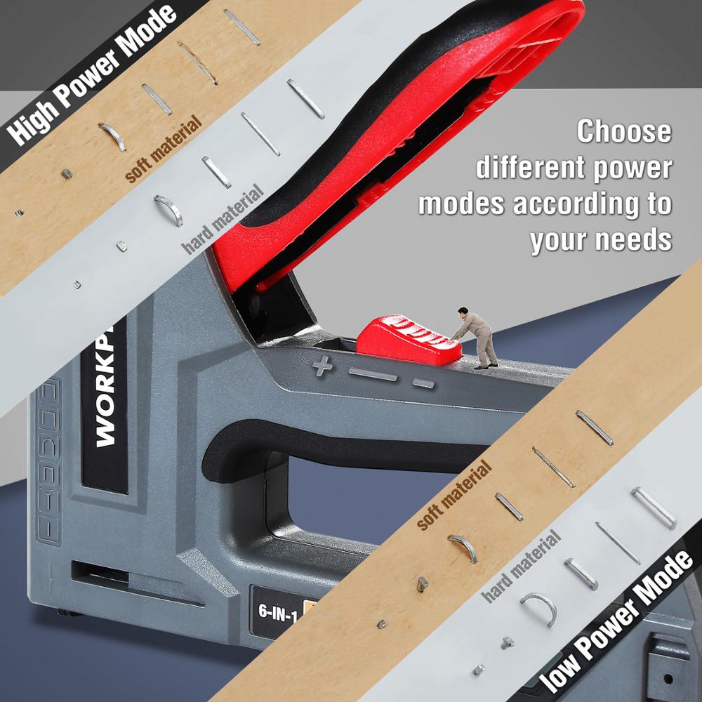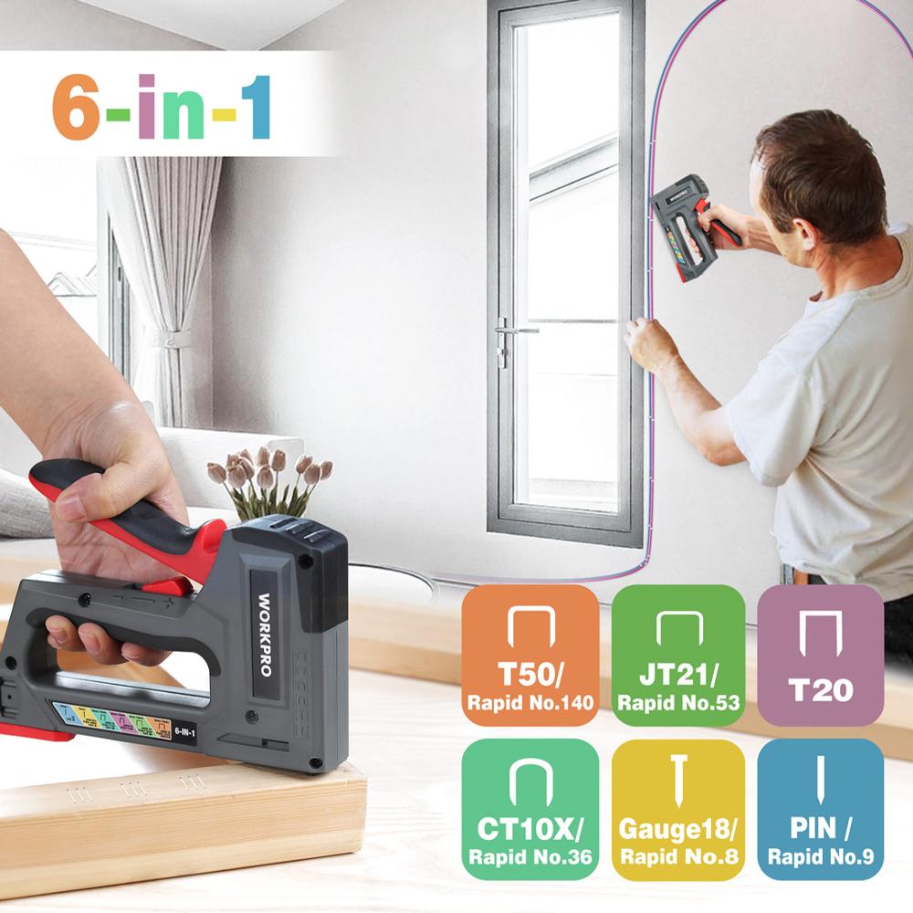 WORKPRO 6-in-1-Tacker, Nagelpistole, manueller Tacker, Hefter, Polster, Kunststoff, Möbel, Nagler, Werkzeug, robuster Tacker für Zuhause