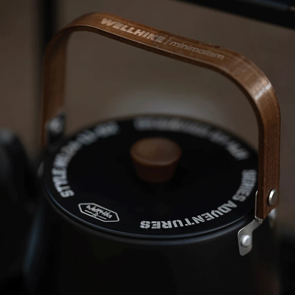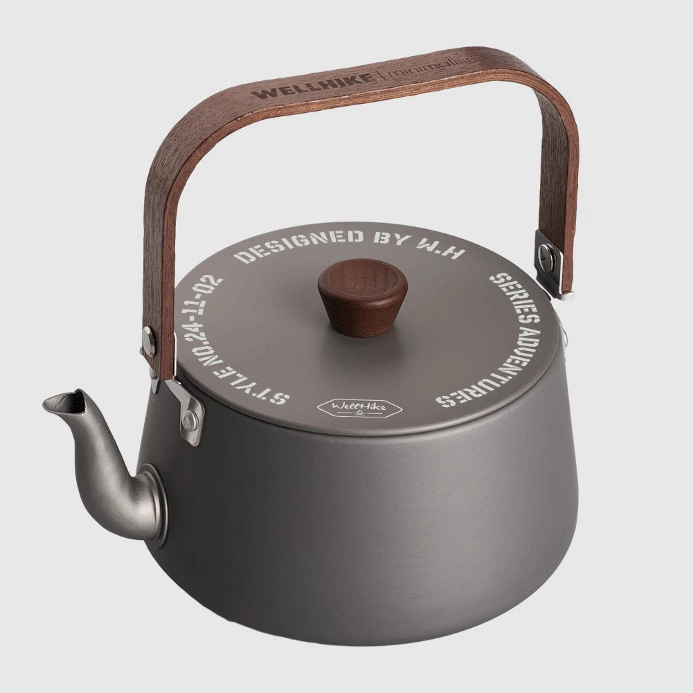 1.1L Camping Water Kettle with Wooden Handle Outdoor Portable Teapot Aluminum Alloy Lightweight Coffee Pot Tourist Tableware Specification: Origin: Mainland China Material: Walnut + Aluminum Alloy Color: Titanium Gray, Titanium Black Capacity: 1.1L Weight: About 198g Water Boiling Time: About 6min Pot Body Size: 14cm/5.51in*8cm/3.15in Spout Size: 1cm/0.39in Pot Mouth Size: 12cm/4.72in Can Be Filled With Boiling Water: Can Be Filled With Boiling Water Can Be Folded: Yes Type: Teapot