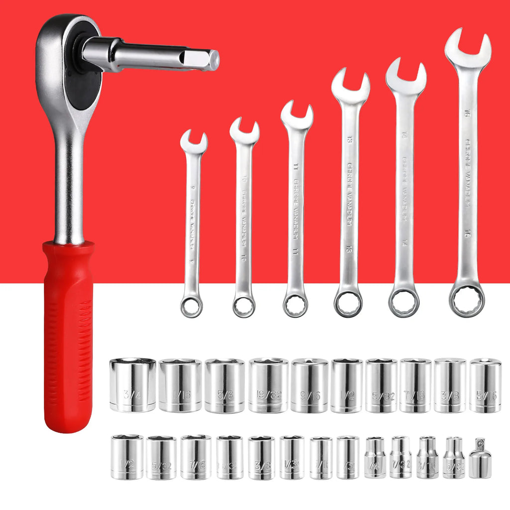 【High Quality Tool Case Set】It is mainly used 45# carbon steel, finished in highly polished chrome, the tool is strength, durability, anti-corrosion, not easy to break. The tool is ergonomically designed with a non-slip handle, comfortable to use. Hands will not feel slightly sour after using the tools for a long time.