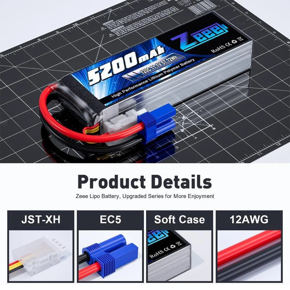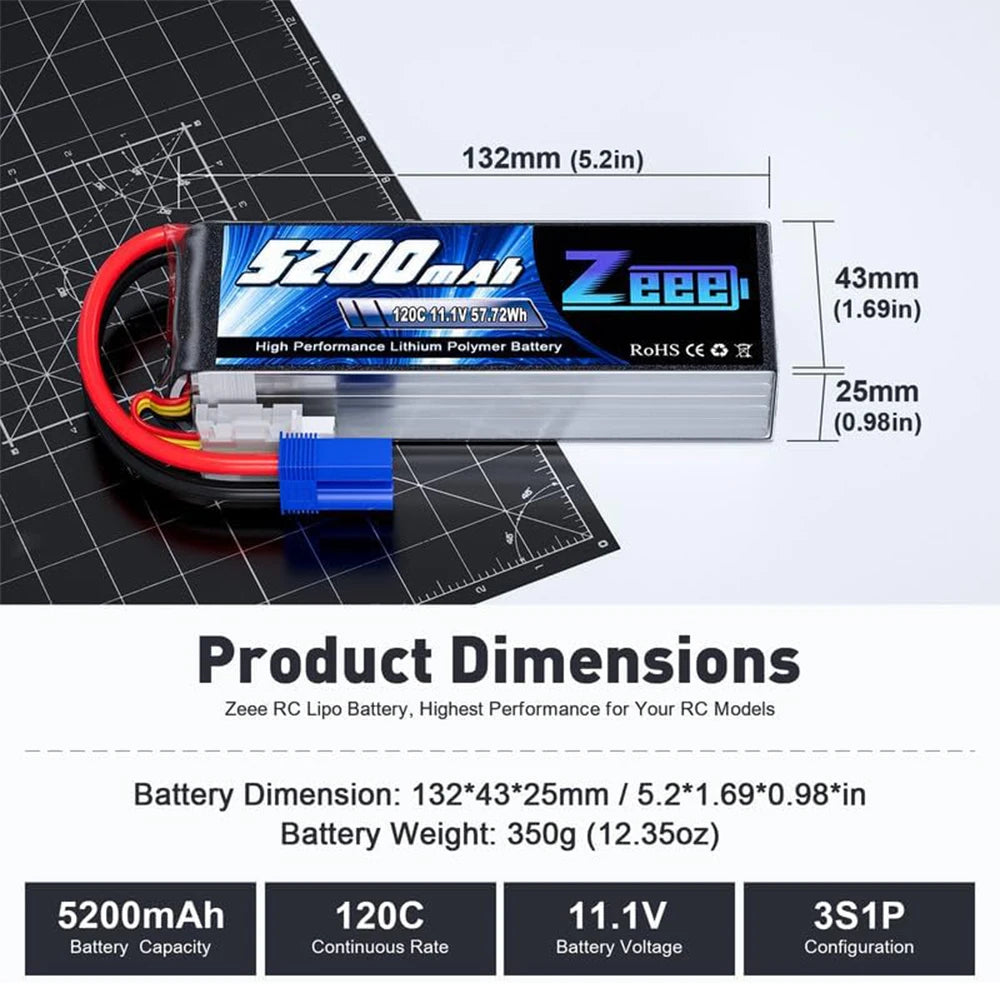 Zeee 3S Lipo Battery 11.1V 120C 5200mAh EC5 Plug for RC Car Helicopter Quadcopter Boat RC Airplane