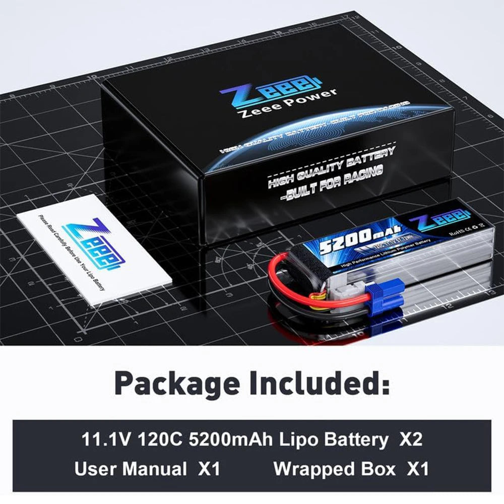 2 pcs Zeee 11.1V 3S 120C 5200mAh lipo battery Soft Case with EC5 Plug