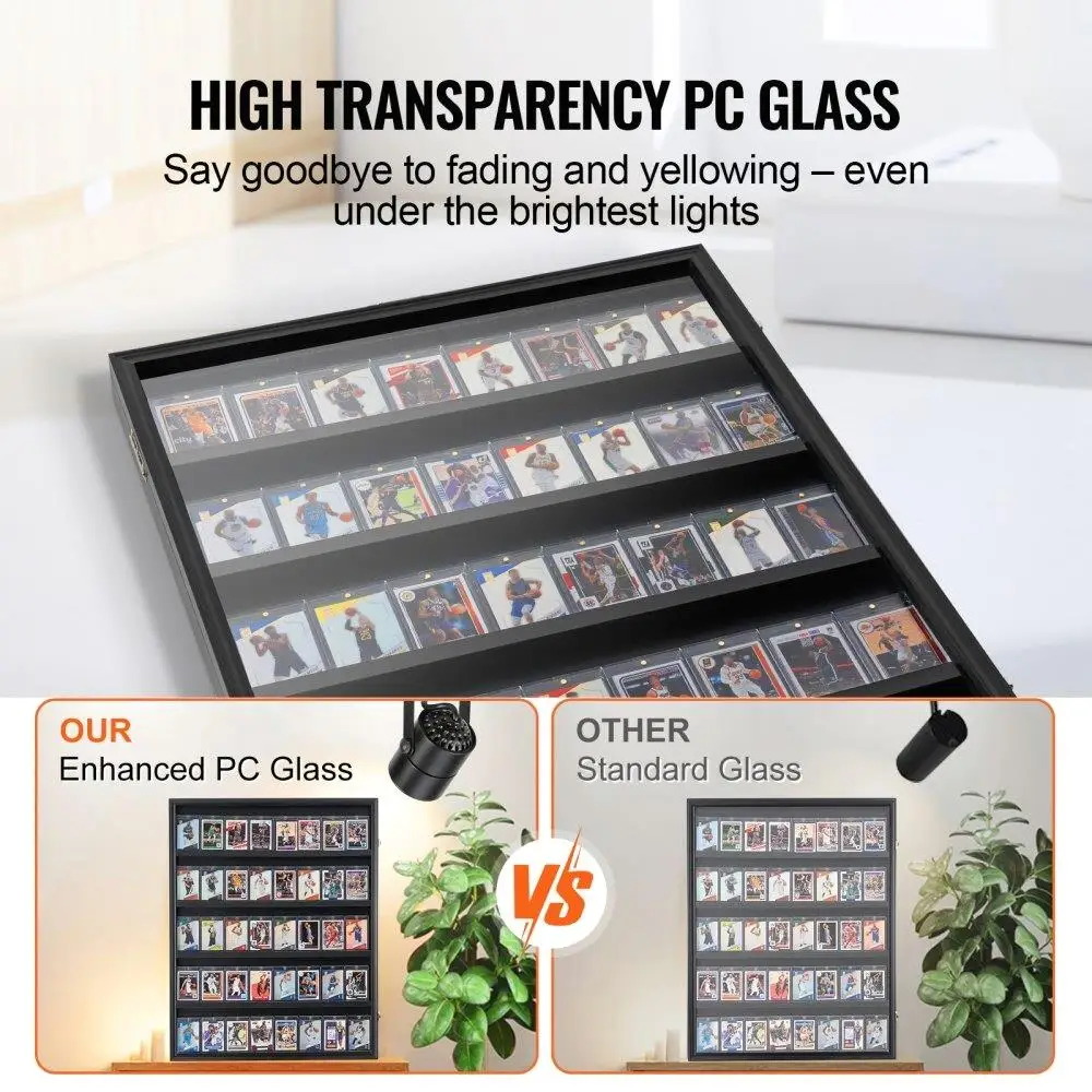 Experience Crystal-Clear Display: Our display cases for cards features PC glass panels with exceptional transparency (over 92%) and UV protection (98% UV resistance), providing a high-definition viewing experience. Your cards stay vibrant and resist fading or discoloration, even under prolonged exposure to light. Invest in quality and protection for your memorabilia today!