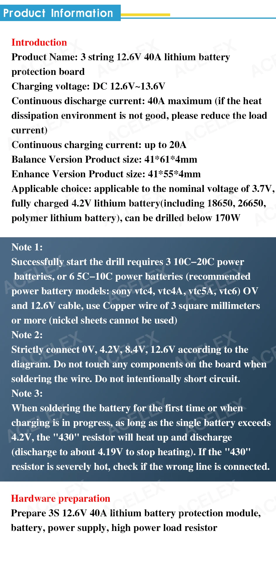 Strictly connect 0V, 4.2V, 8.4V, 12.6V according to the diagram. Do not touch any components on the board when soldering the wire. Do not intentionally short circuit.