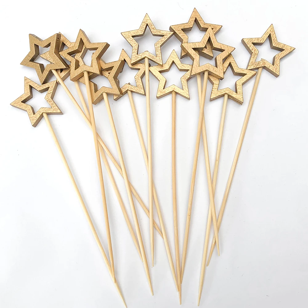 Star Disposable Bamboo Skewers Gold Silver Buffet Fruit Food Picks Cocktail Sticks Birthday Party Wedding Decor Christmas