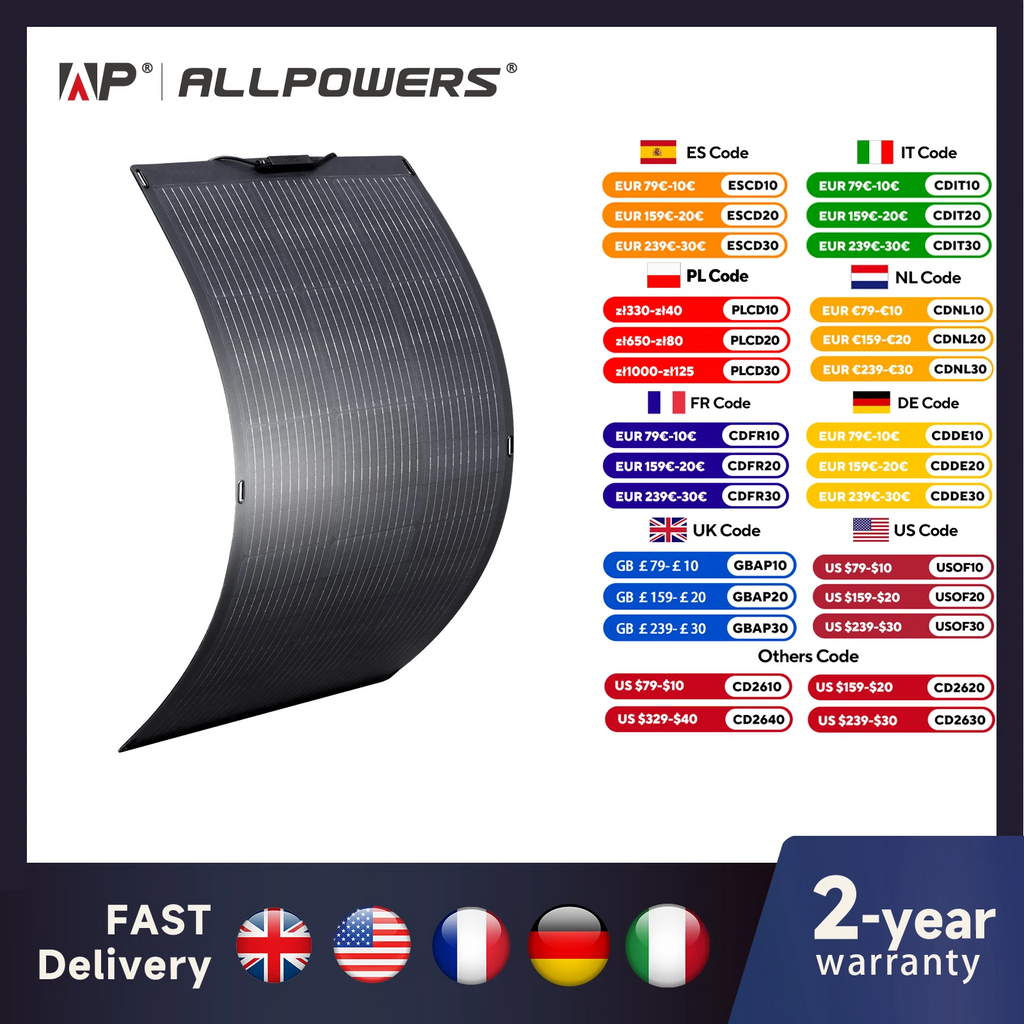 ALLPOWERS Flexible Solar Panel 100W Monocrystalline Solarpanel Solar Module Solar Cell Photovoltaic for Boat Roofs Garden RV