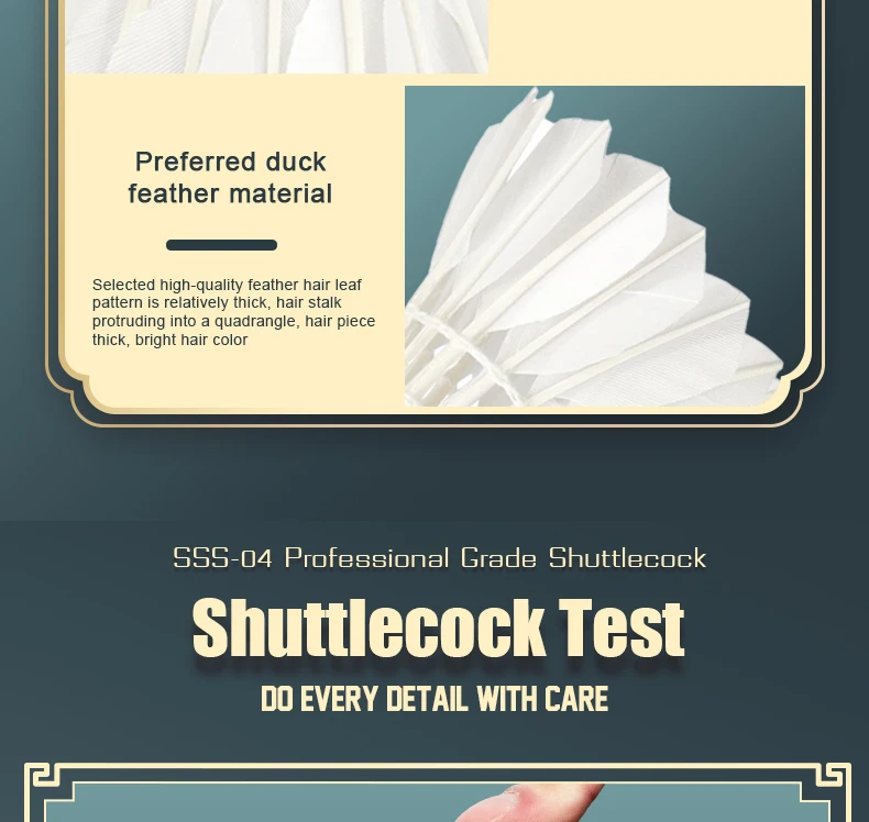 7. Xuanwu 04 features: The top flight and striking feeling in duck feather, more accurate, with top Triple ply cork composite shuttlecock head, top glue, perfect design, especially suitable for professional tournaments, advanced tournaments, high-intensity rivalry tournaments, perfect use of your striking ability and precision attack ability.