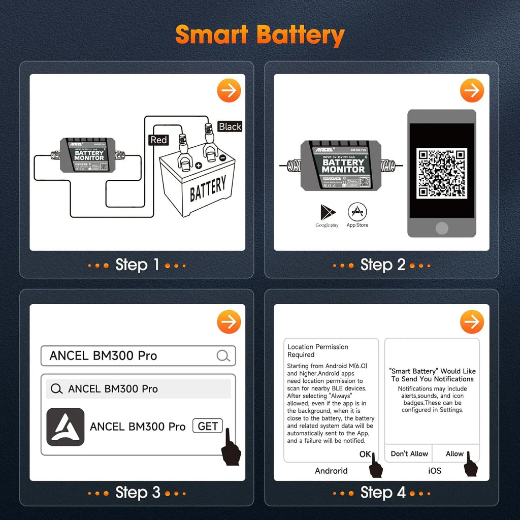 ANCEL BM300 PRO Bluetooth Battery Monitor Tester 6V/12V/24V Car Motorcycle Cranking/Charging Battery System Analyzer Test Tools