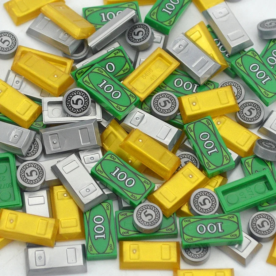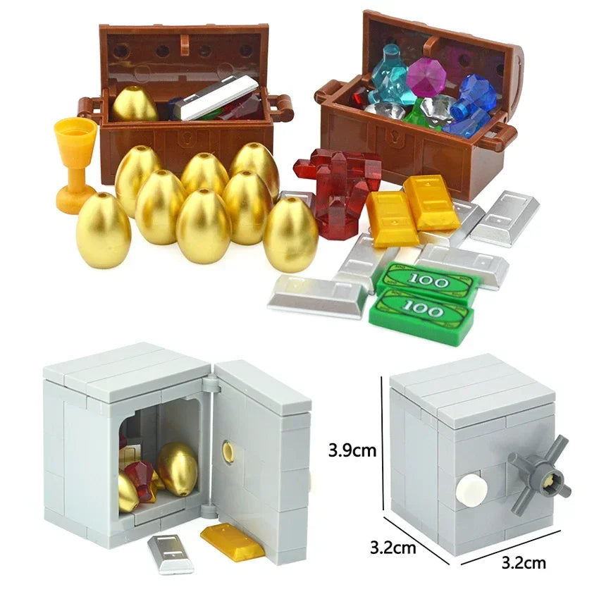 City Treasure Gold Silver Diamond Safe Box Building Blocks Jewel Dollars Cash Coin Brick Compatible Figures Accessories Kids Toy