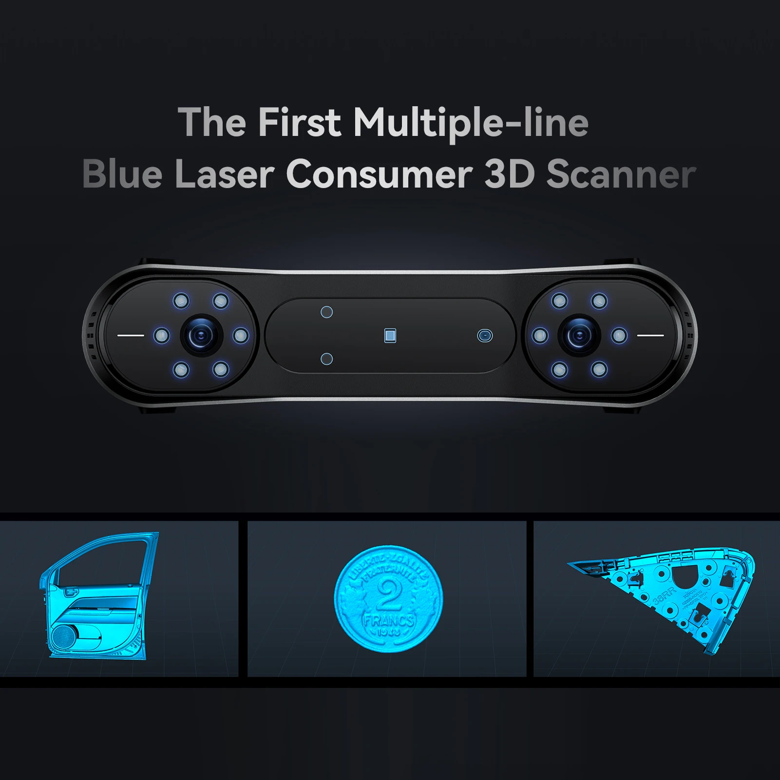 【The First Multiple-line Blue & NIR Consumer 3D Scanner】Creality CR-Scan Raptor Scanner integrates an innovative combination of blue infrared light sources, covering scanning of small, medium, and large objects, which can meet the needs of diverse industrial 3D scanning scenarios. 7 parallel blue lines for fine scanning details, single line is very thin, up to 0.1mm to obtain sharper and clear edges. The scanning accuracy up to 0.02mm ensures every detail is sharp and clear.