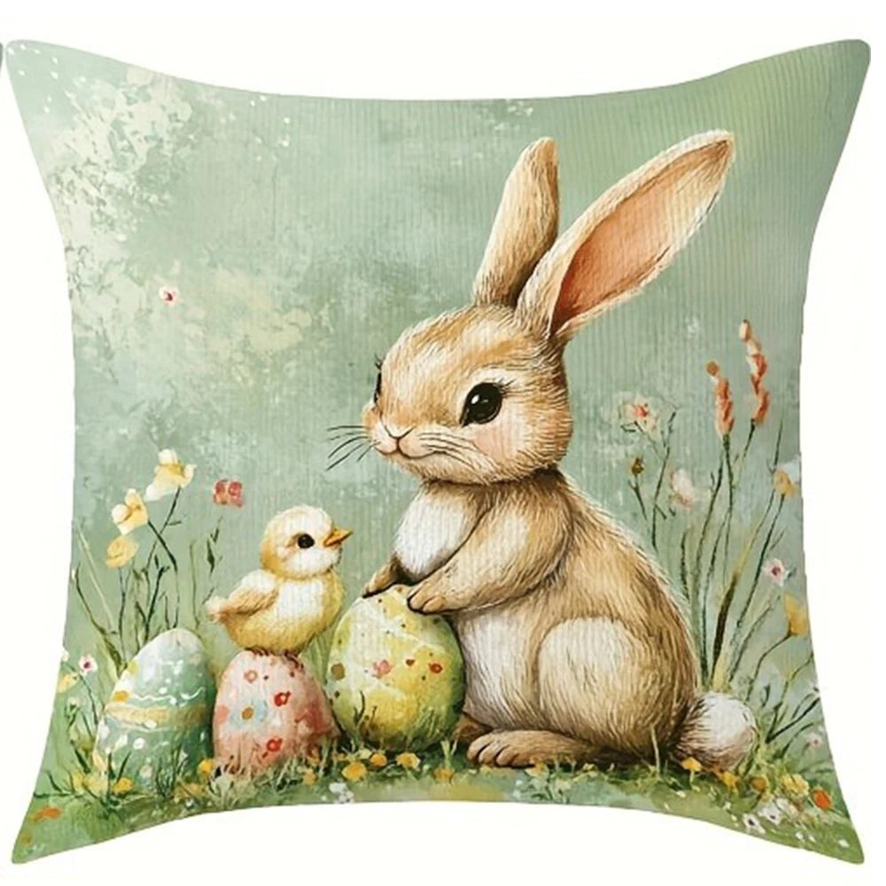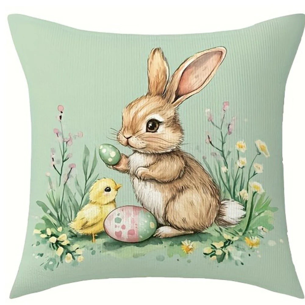 Easter decoration pillow cover rabbit chick and egg print soft and comfortable sofa cushion cover home room decoration