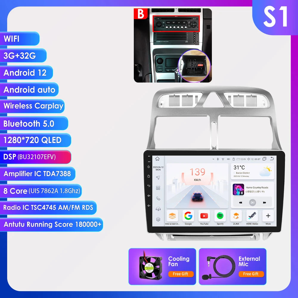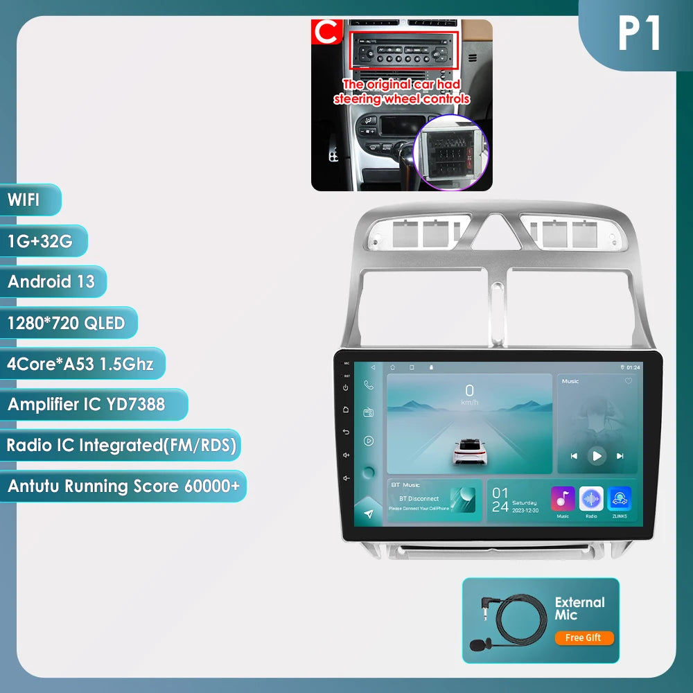 For PEUGEOT 307 sw 307 2002 - 2013 cars have 3 different power cables with different interfaces, divided into A/B/C.