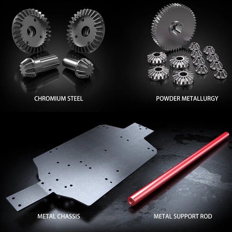 4. Chrome steel gear differential, chrome steel + powder metallurgy gears, metal chassis