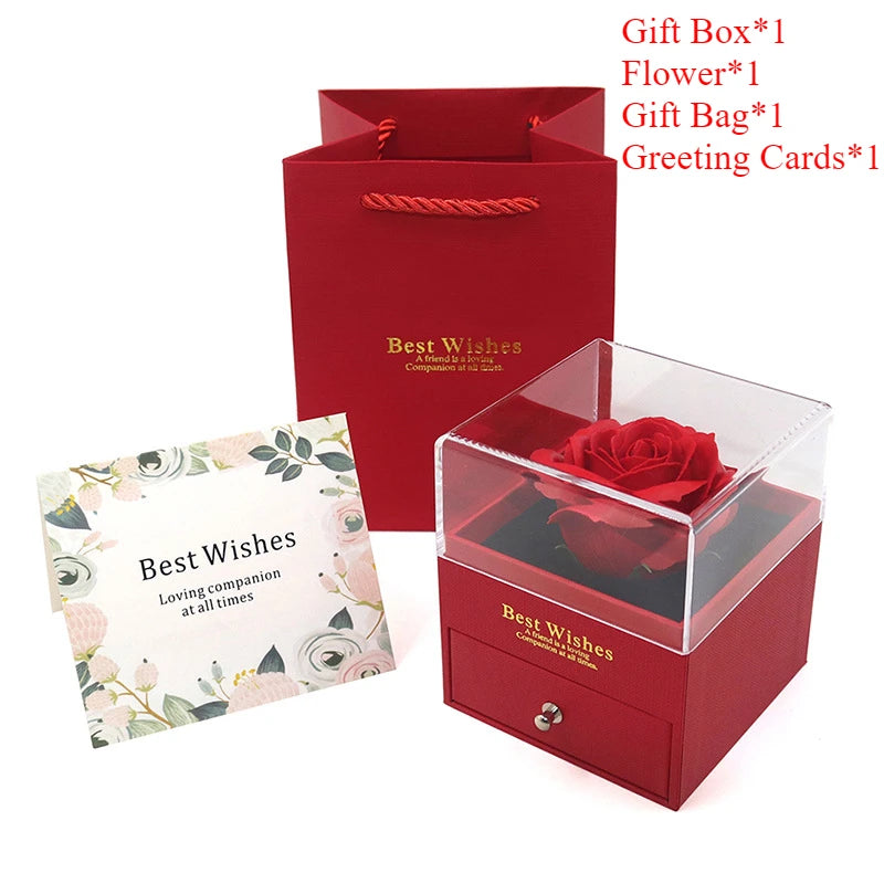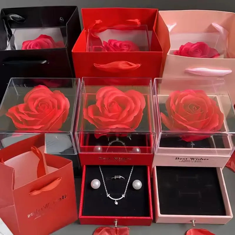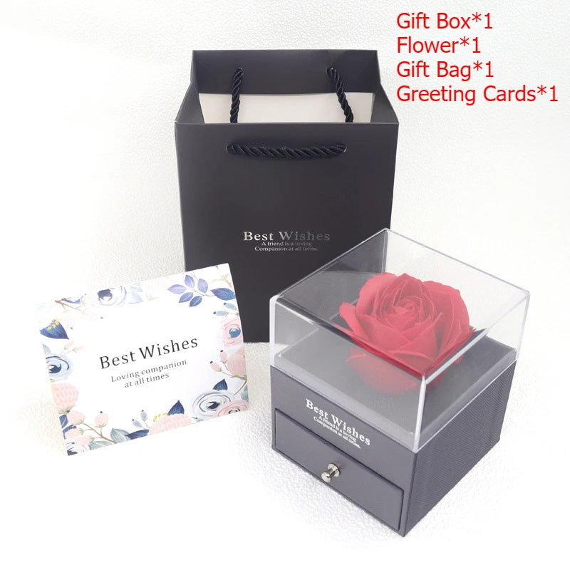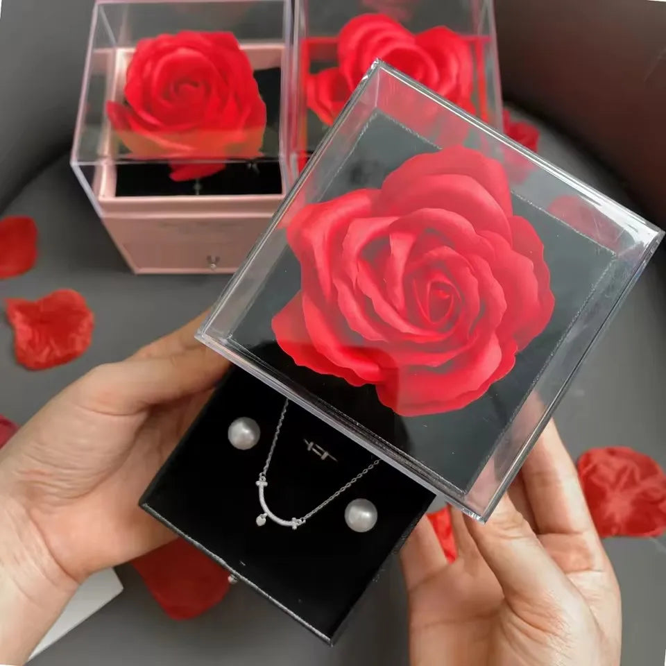 Preserved Flower Rose Gift Box Eternal Pink Rose Jewelry Storange Box Romantic Gift for Mother's Day Birthday or Valentine's Day