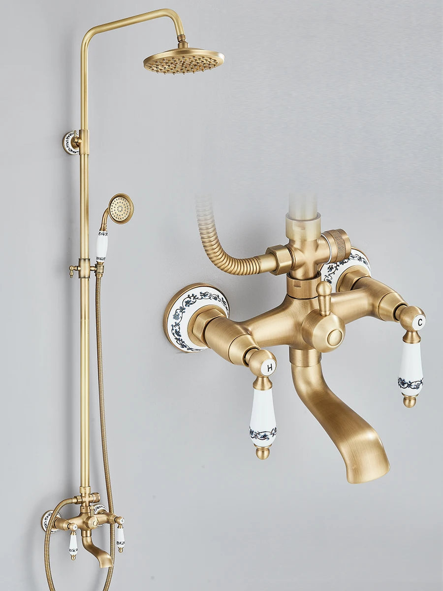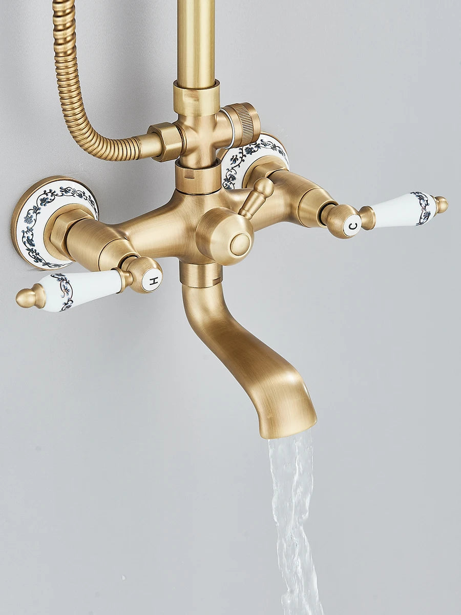 Retro Shower System Antique Brass Rainfall Shower With Handheld Shower Tub Spout For Bath Shower