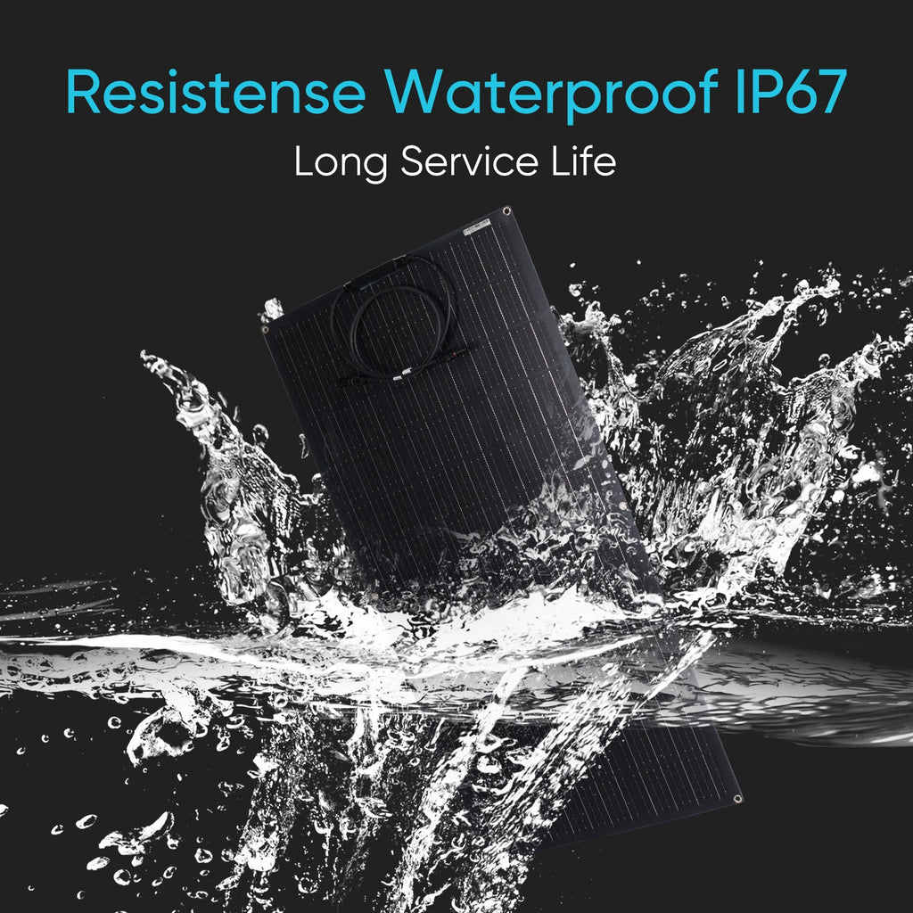 The flexible design of this solar panel makes it easy to install and ideal for use in various environments, including outdoor spaces and vehicles.