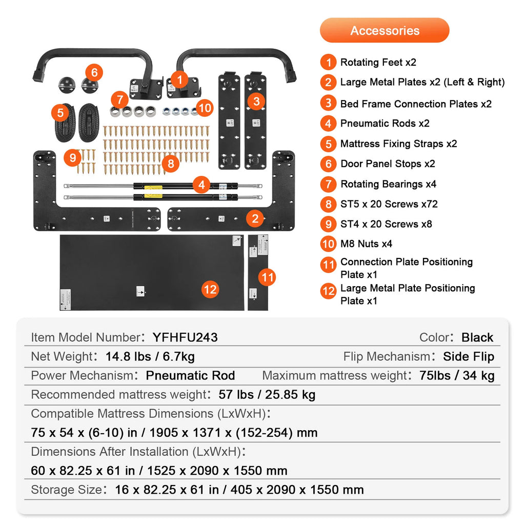 The Murphy bed kit has an integrated pivot board, eliminating measurement hassle for easy assembly.