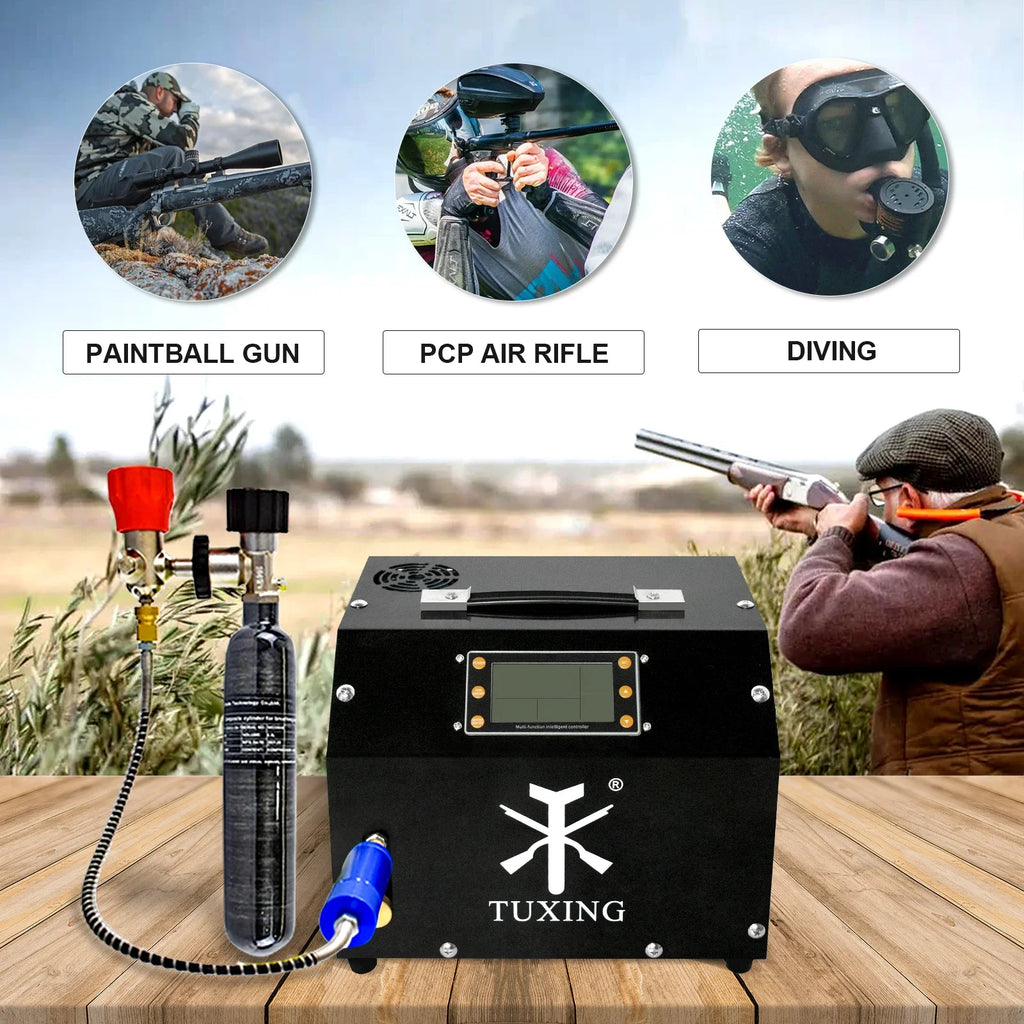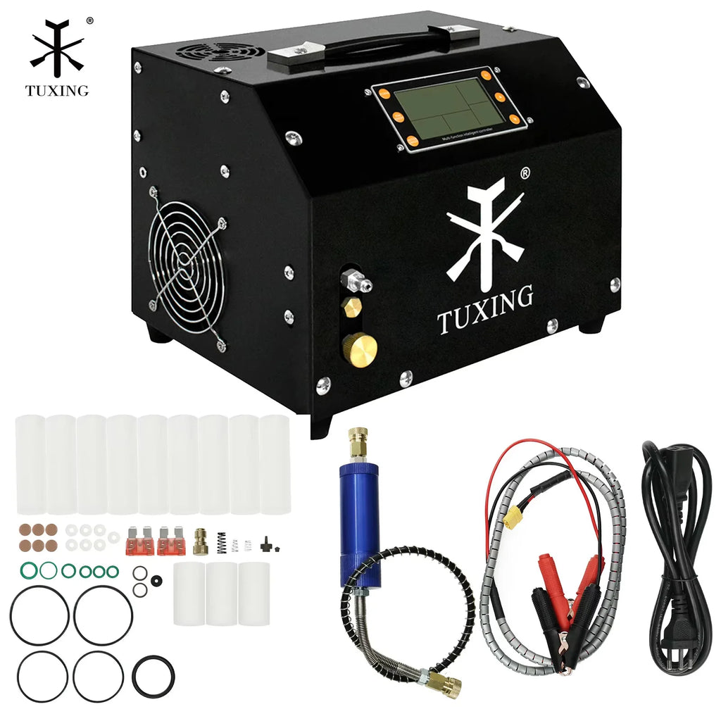 TUXING 4500psi PCP Air Compressor 300bar LCD Display Digital Control Compressor Built-in Power Adapter for Rifle Scuba Diving