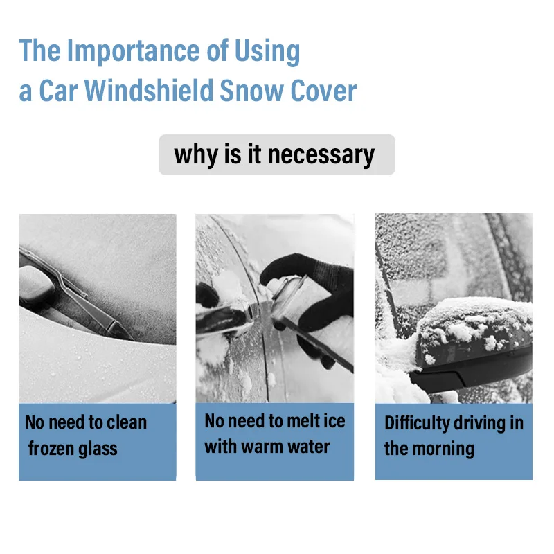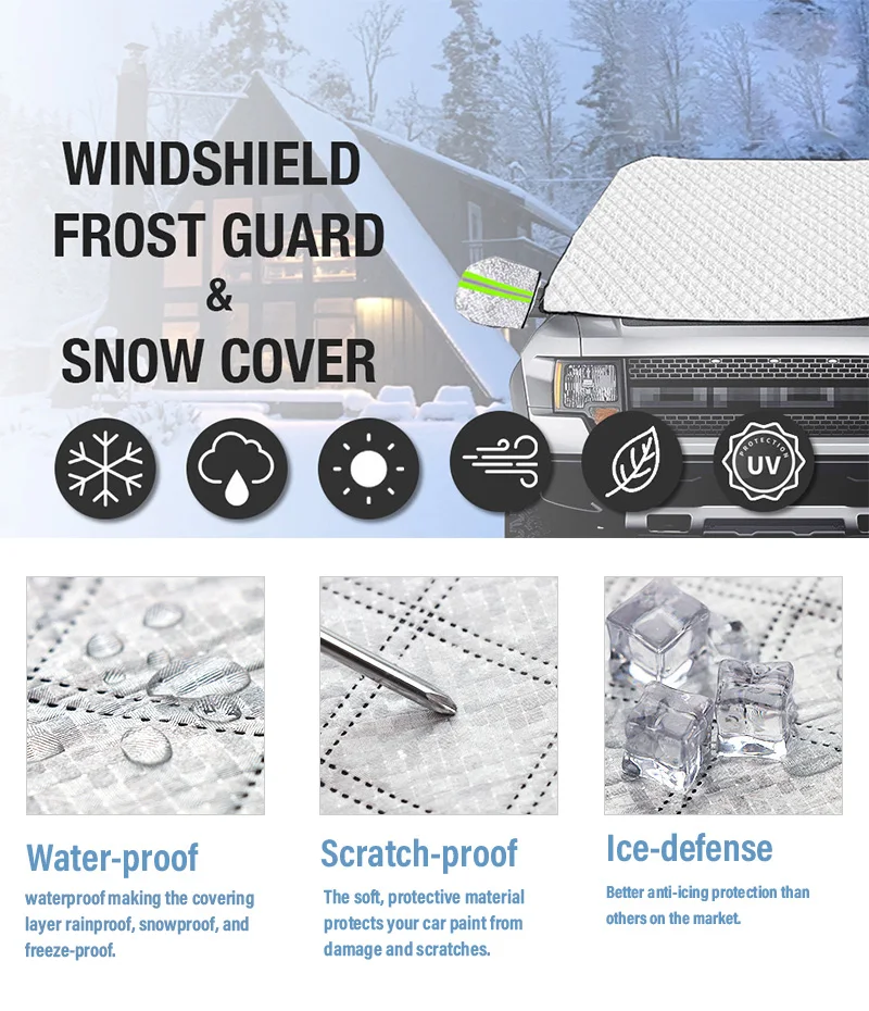 【Protection for All Weather】: protects your car from from snow, frost, water, sleet, slush, hail and snowstorms. Save your time in winter mornings to clean up snow and also maintain visibility of your windshield,Can be used in all seasons