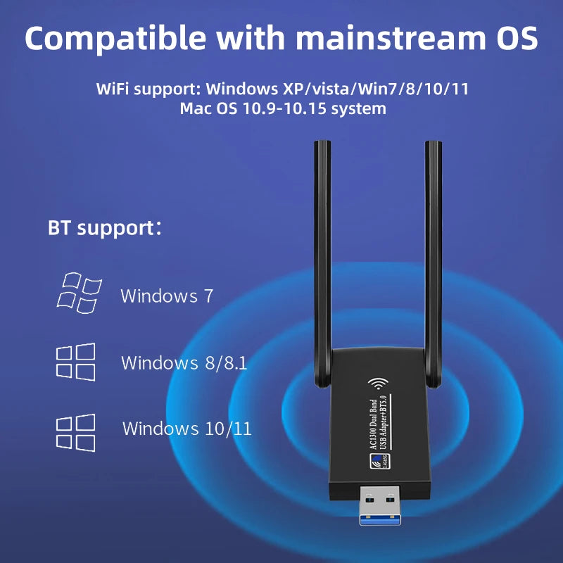 Operating system support: WIN7/WIN8/10/11(win10 win11 is driver-free, and win7 needs to install a driver, 1300M for wifi6 router and 1200M for wifi5 router).