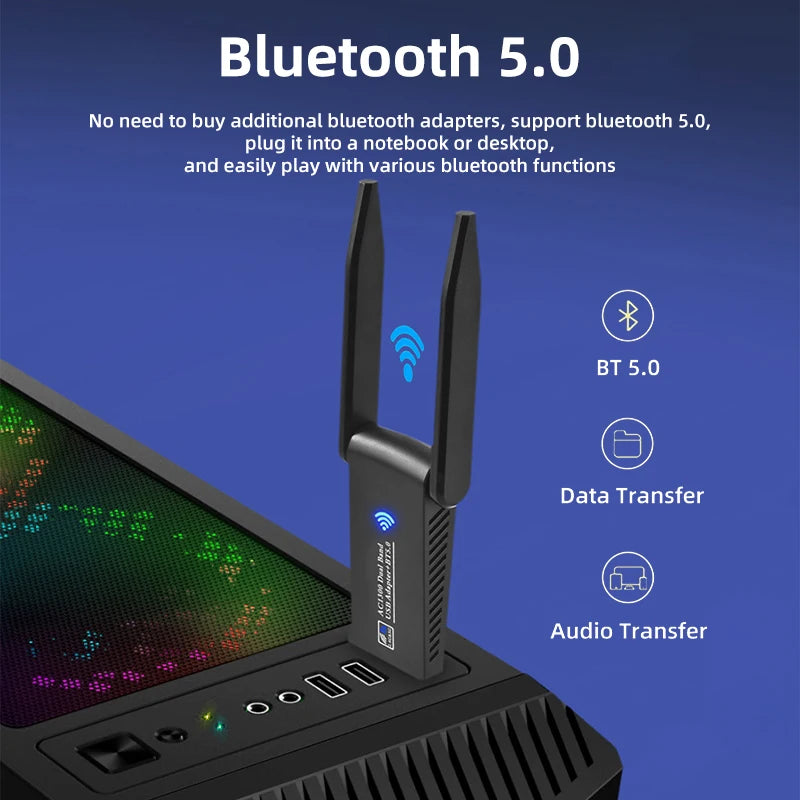 1 x 1300Mbps Dual Band WiFi Bluetooth USB Wireless Adapter