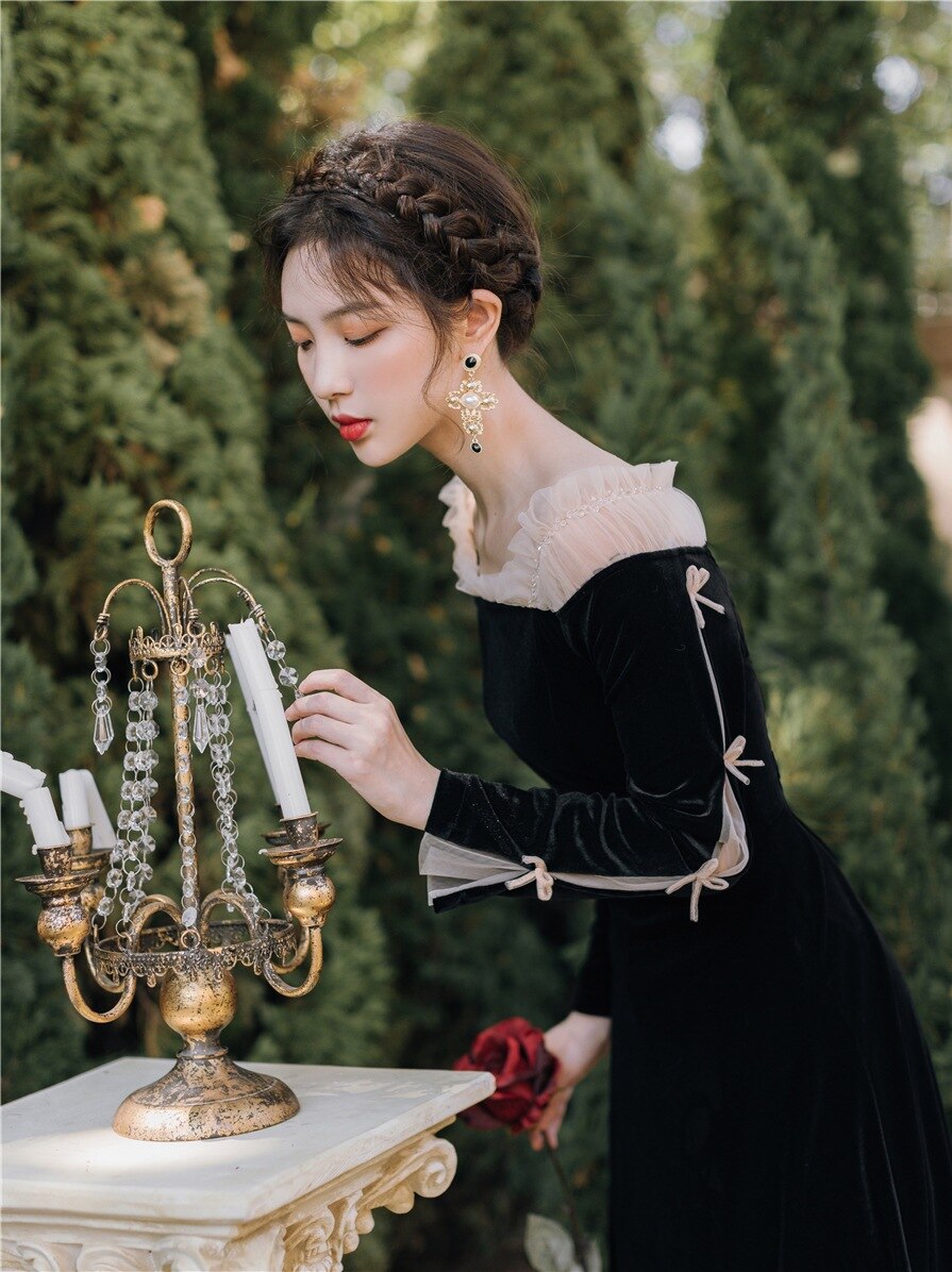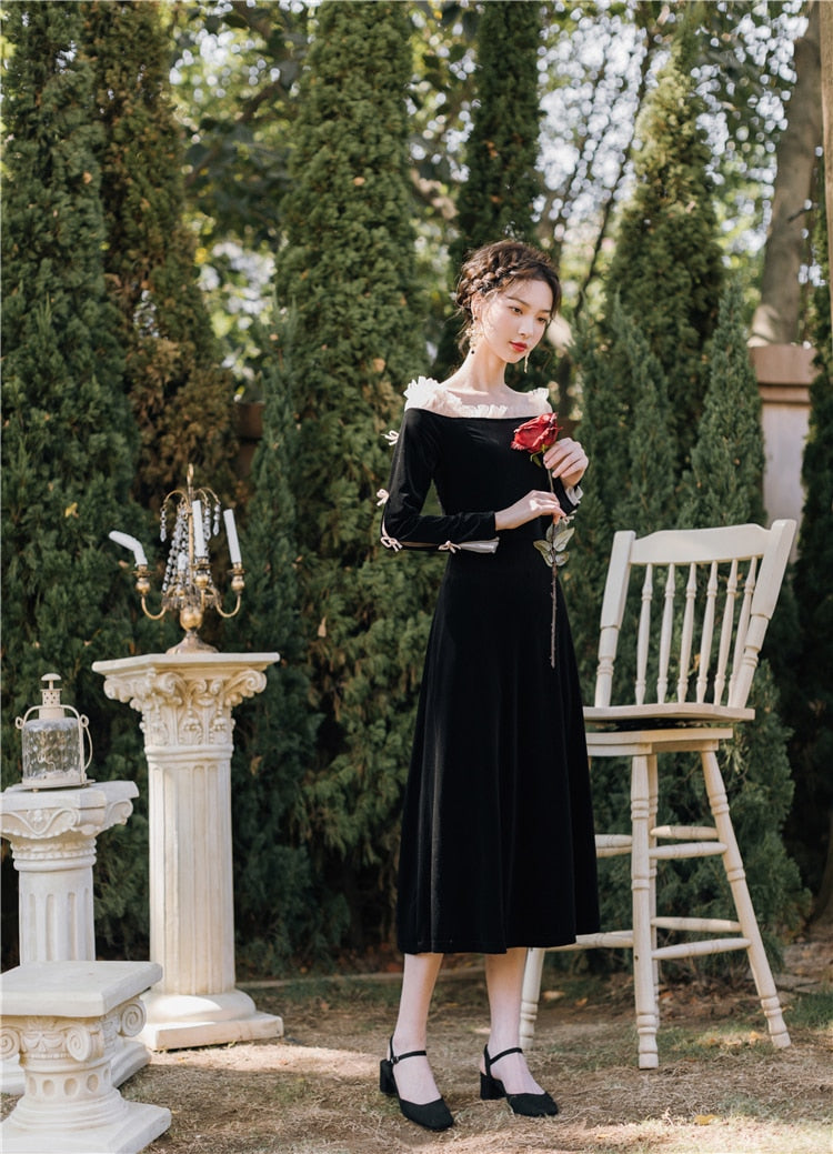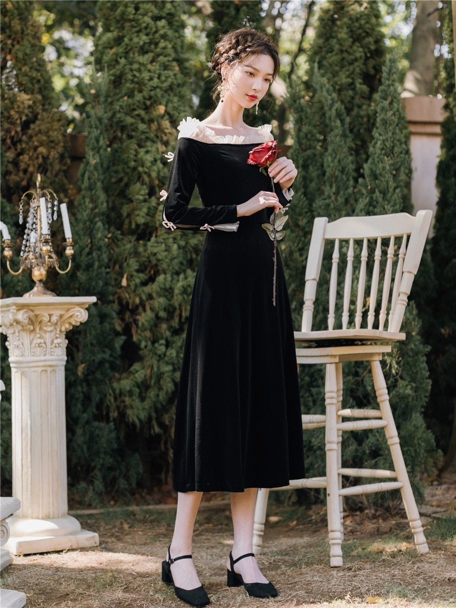 2020 neue Mode Damenbekleidung Herbst und Winter Samtkleider Slash Neck Vintage Kleid Frauen