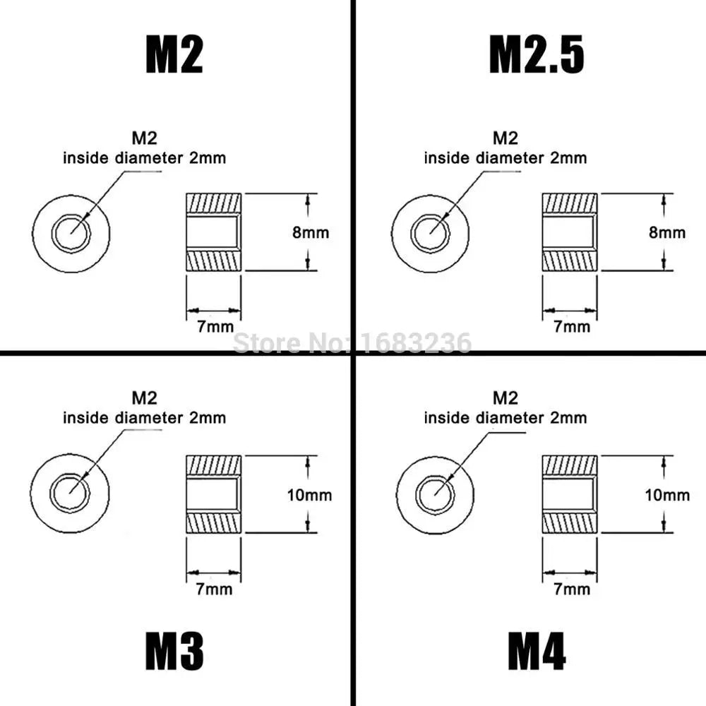 Inside thread diameter: 2mm(M2) / 2.5mm(M2.5) / 3mm(M3) / 4mm(M4)