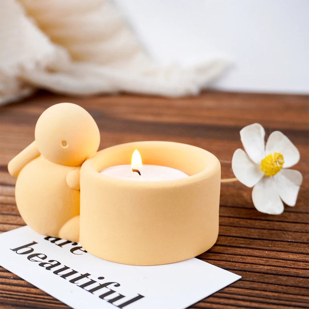 3D Easter Rabbit Candle Holder Silicone Mold DIY Round Shape Candlestick Candle Jar Plaster Cement Resin Casting Mold Home Decor