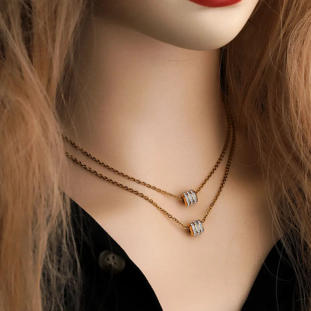 Name: 5pcs 8mm Hole 3mm Bead Stainless Steel 3 Rows Rhinestones Round Tube Charm Beads Gold Crystal for Jewelry Making Diy Material