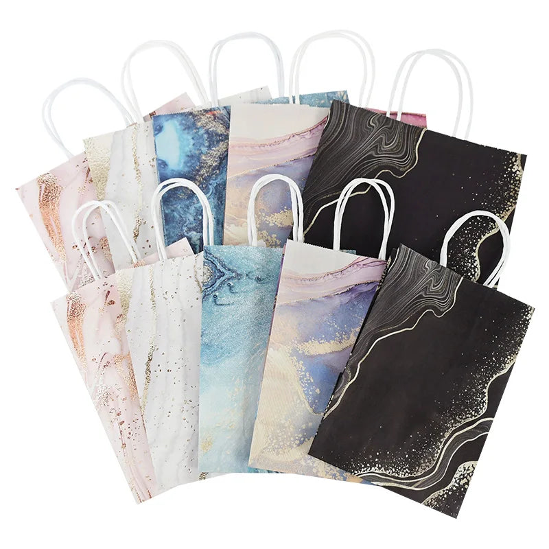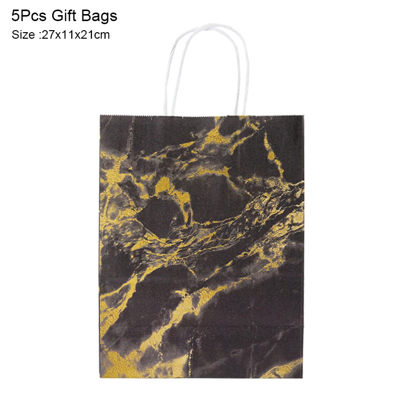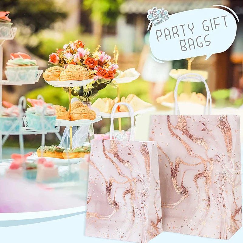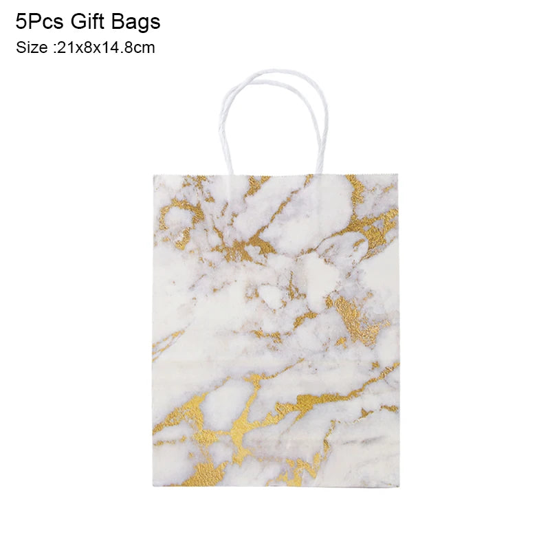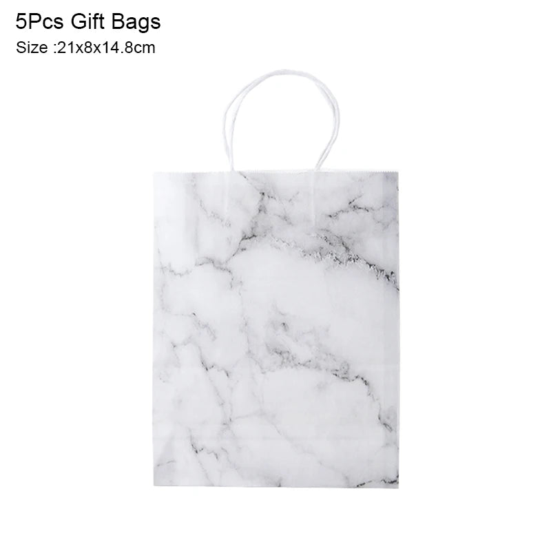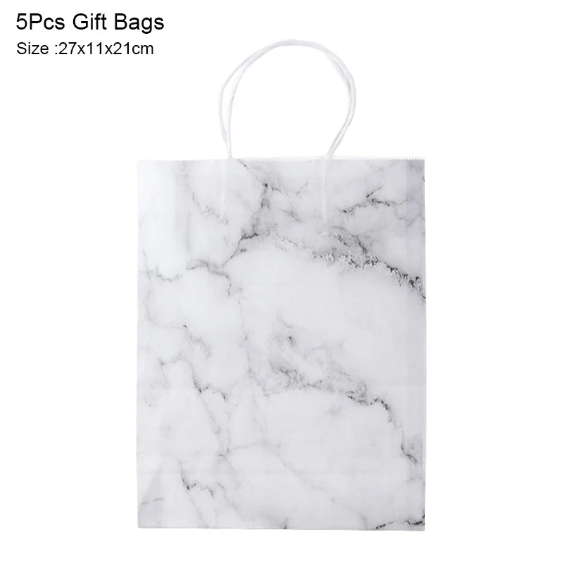 5Pcs Rose Gold Marble Paper Gift Bag Wedding Favor Gift Kraft Paper Shopping Packing Bags For Birthday Baby Shower Party Supply