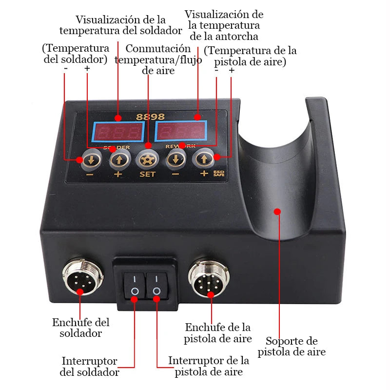 • two in one soldering station: this soldering station combines an electric soldering iron and a welding maintenance tool in a convenient package.