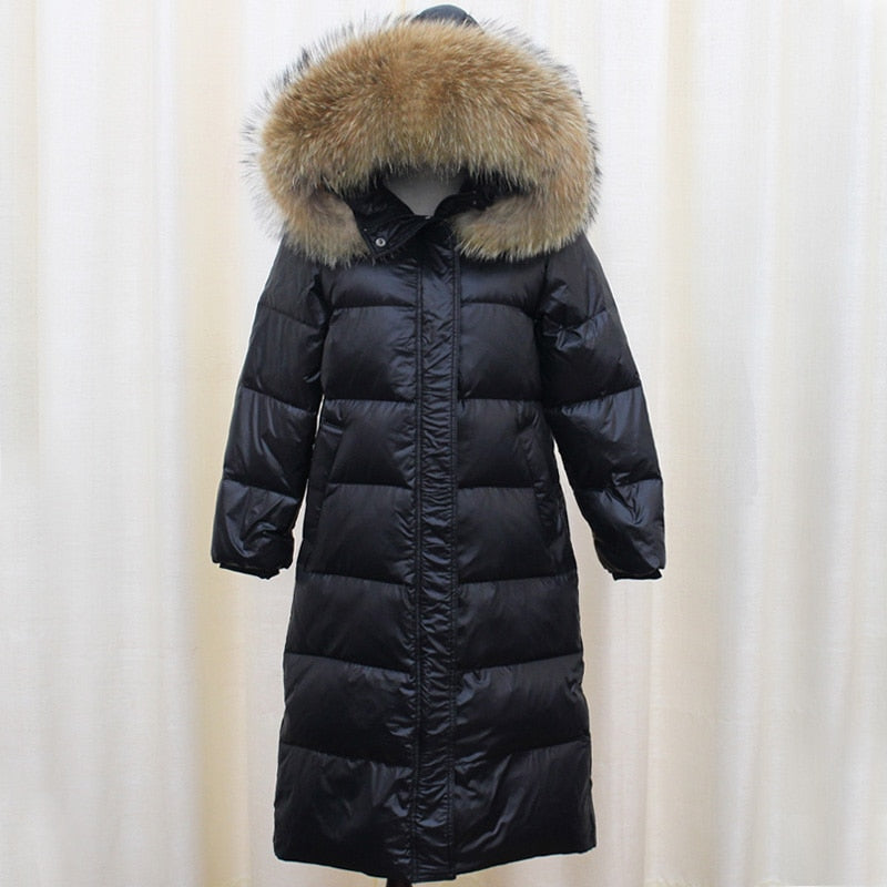 Daunenmantel weiblich : Winterjacke Frauen langer Parka dicke Entendaunen
