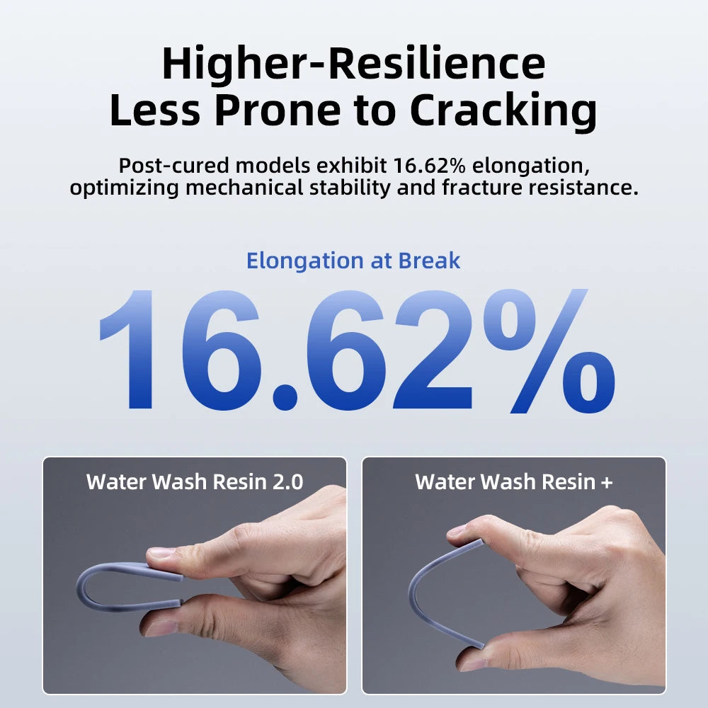 The optimized water washable formula significantly reduces resin odor during both storage and printing, greatly enhancing the user experience. This improvement not only makes the process more environmentally friendly but also ensures a more comfortable and pleasant printing experience.