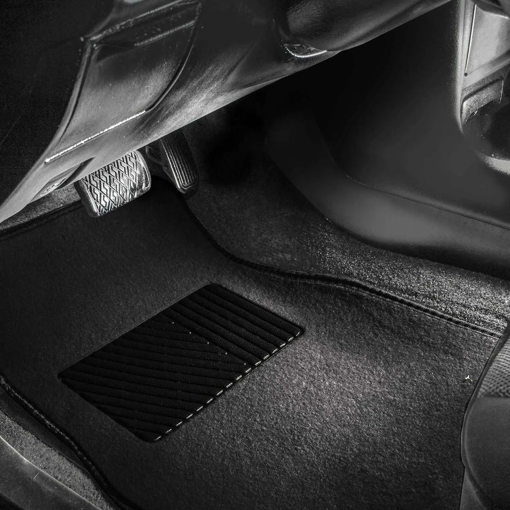 Made with high quality materials to ensure durability and longevity. You have added a handy heel pad on the carpet mats.