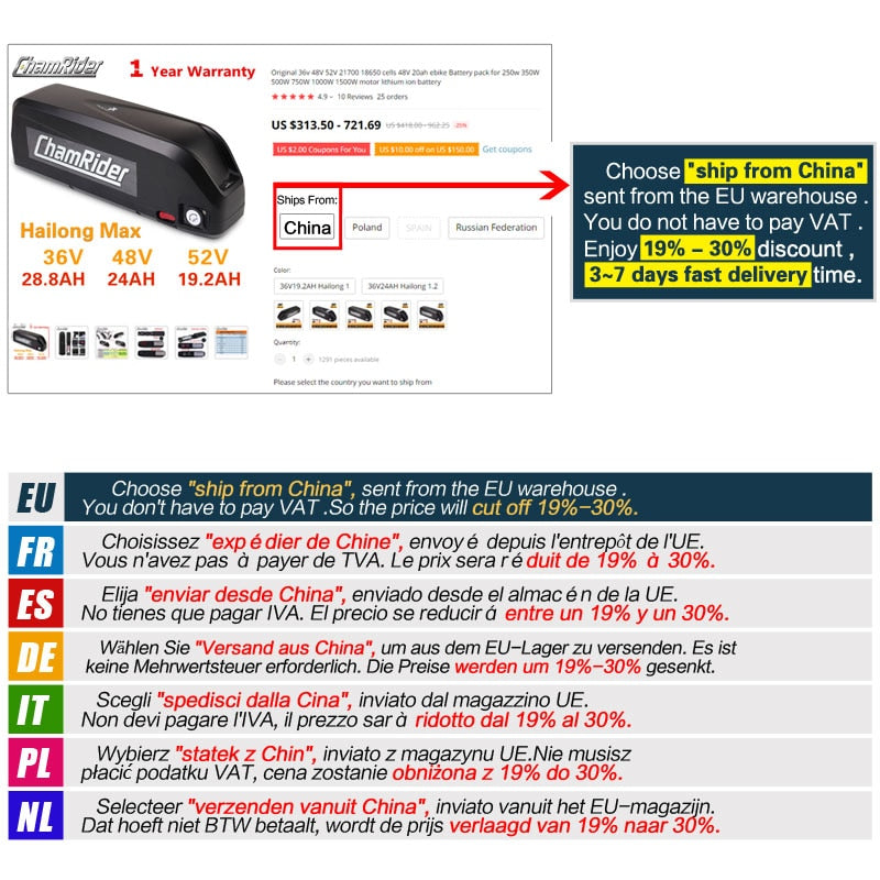 Chamrider 36V Batterie 10AH E-Bike Batterie 25A BMS 48V Batterie 30A 18650 Lithium Akku für Elektrofahrrad Elektroroller