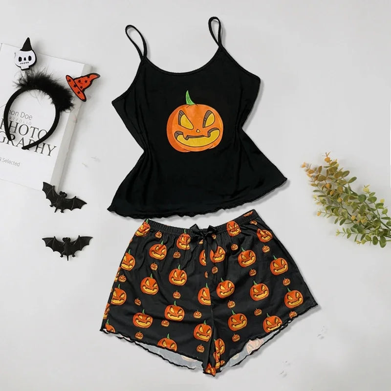 Cute Bear Friends Printed Summer Spaghetti Strap Pajamas Set for Women Tank Top Shorts Female Sexy Lingerie Sleeveless Pijamas