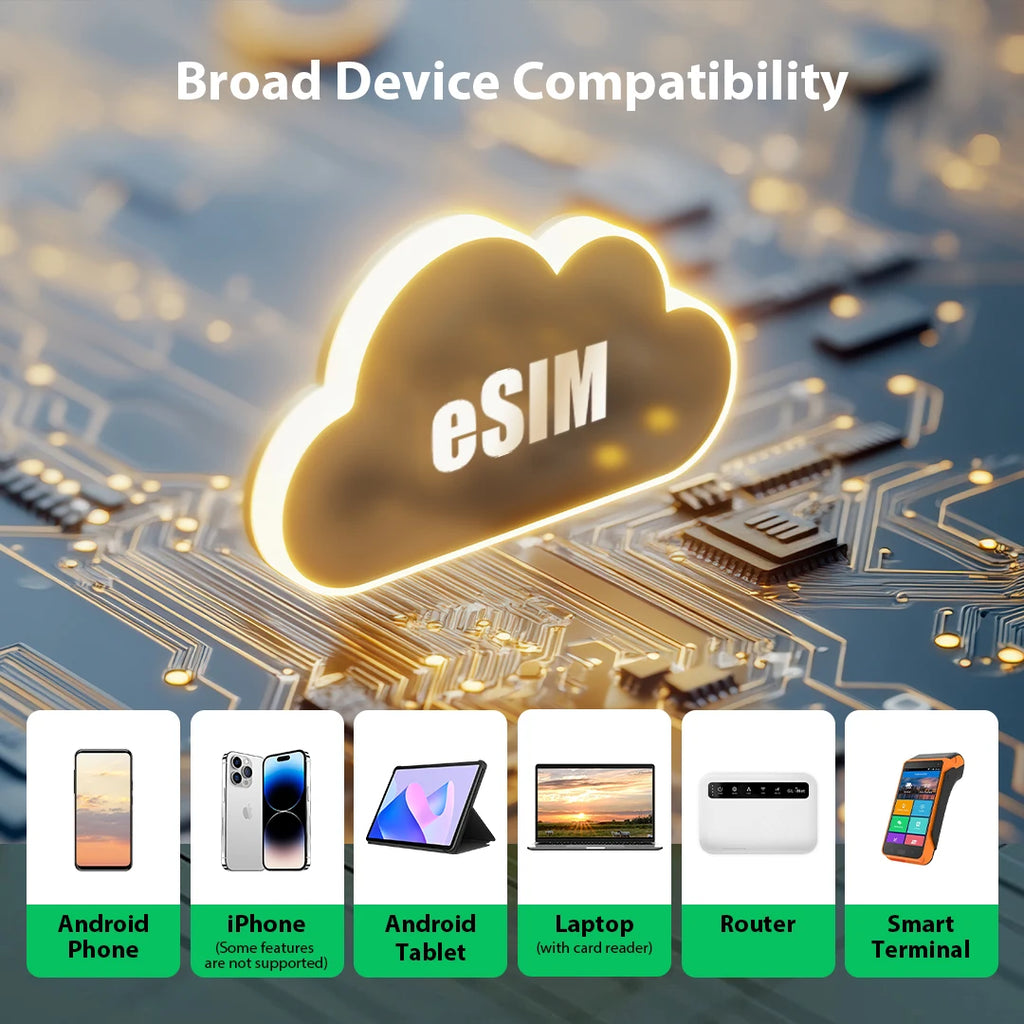 Our triple-cut eSIM card design fits most unlocked devices, ensuring flexibility and ease of use.