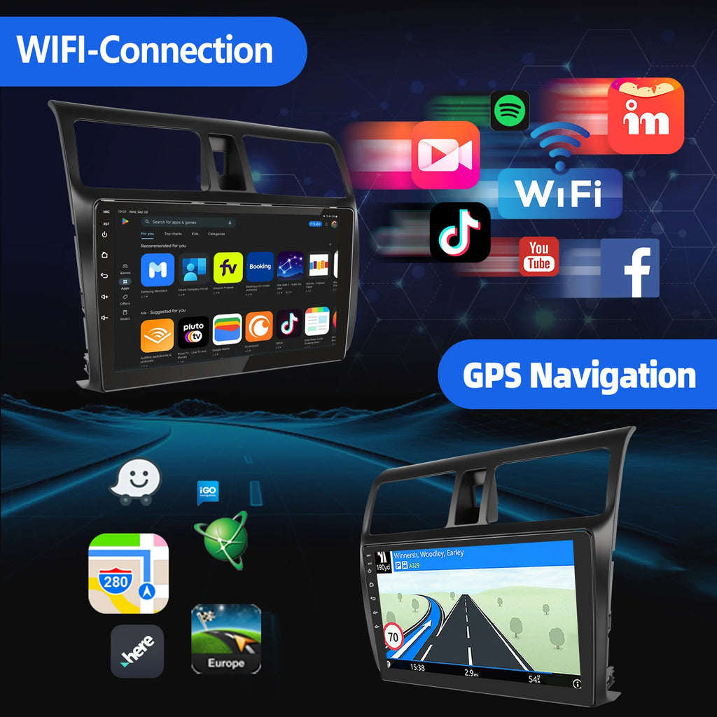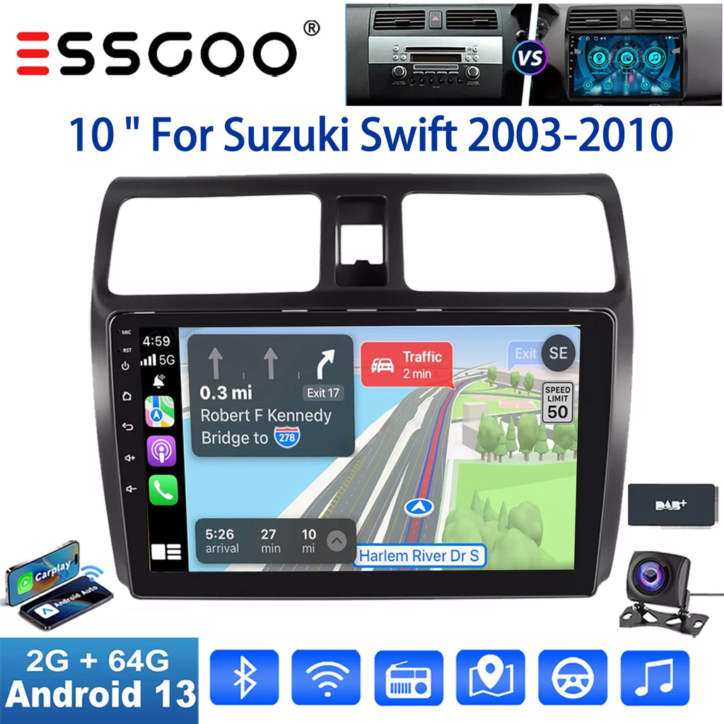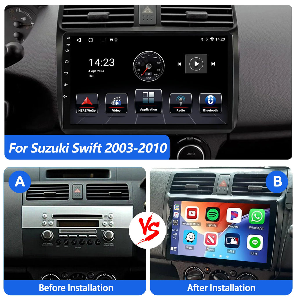 10 Inch Android 13 Car Radio For Suzuki Swift 2005-2010: The Android car radio with 10" 1280*720 HD capacitive touch screen, 2GB /4GB RAM and 32GB /64GB ROM allows you to download your favorite apps and videos, so that driving will never be boring .No additional frame, no cable change, plug and play.