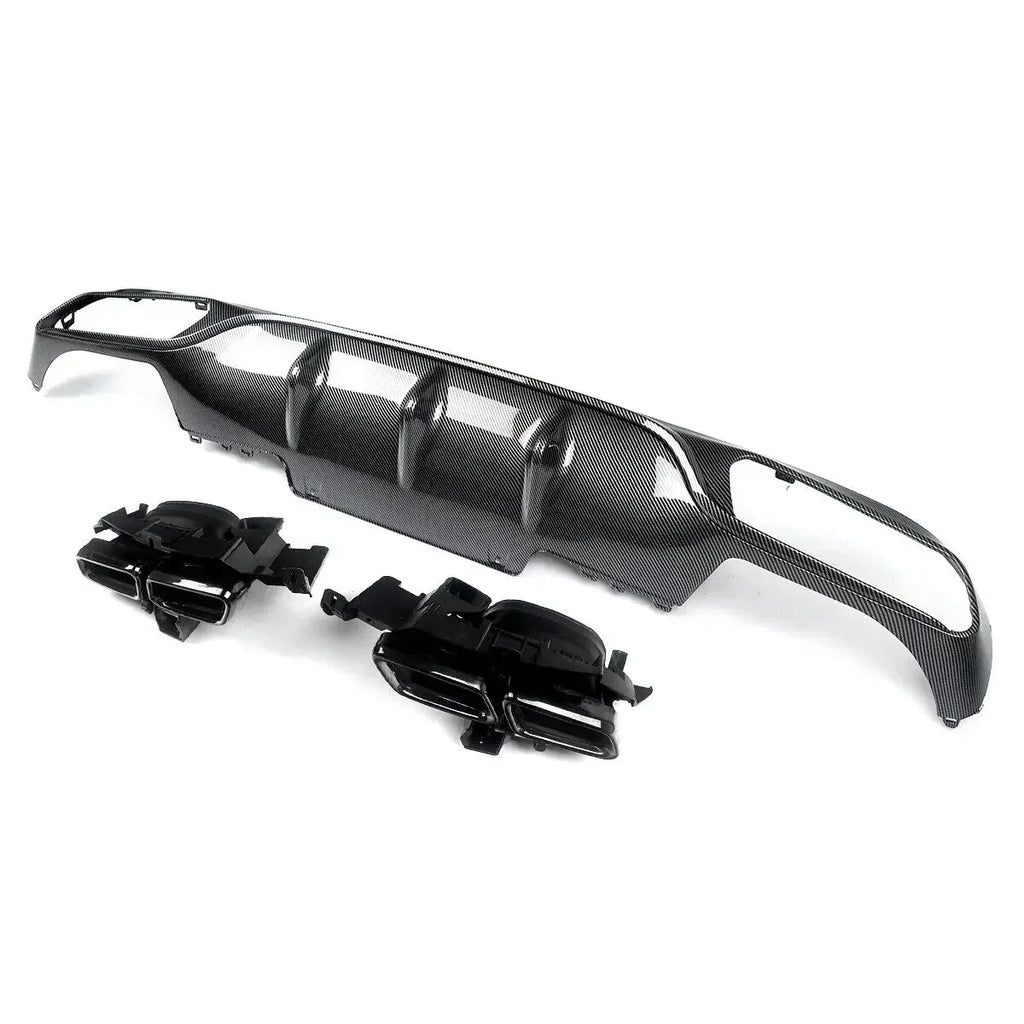 Color: Carbon Fiber Look Rear Diffuser+Black Exhaust Pipes