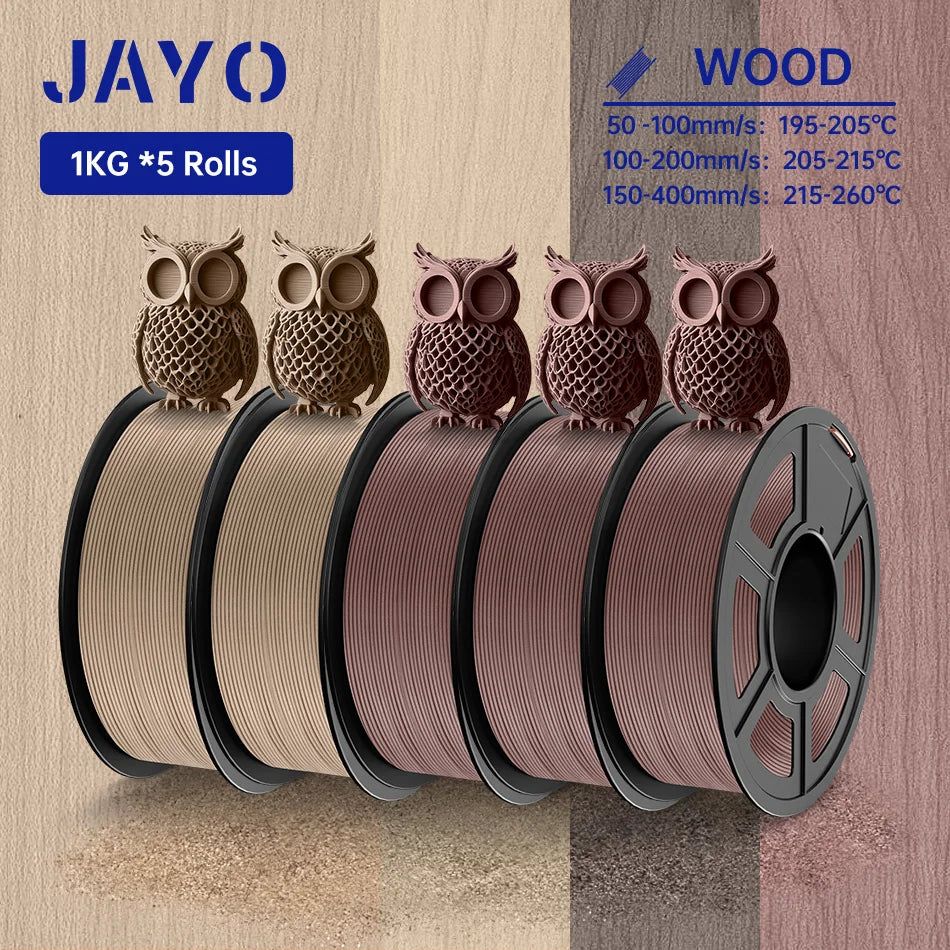 Harness the power of nature with JAYO Wood PLA Filament! Infused with 15% real wood fibers, it allows you to create stunning 3D prints with an authentic wood-like finish.
