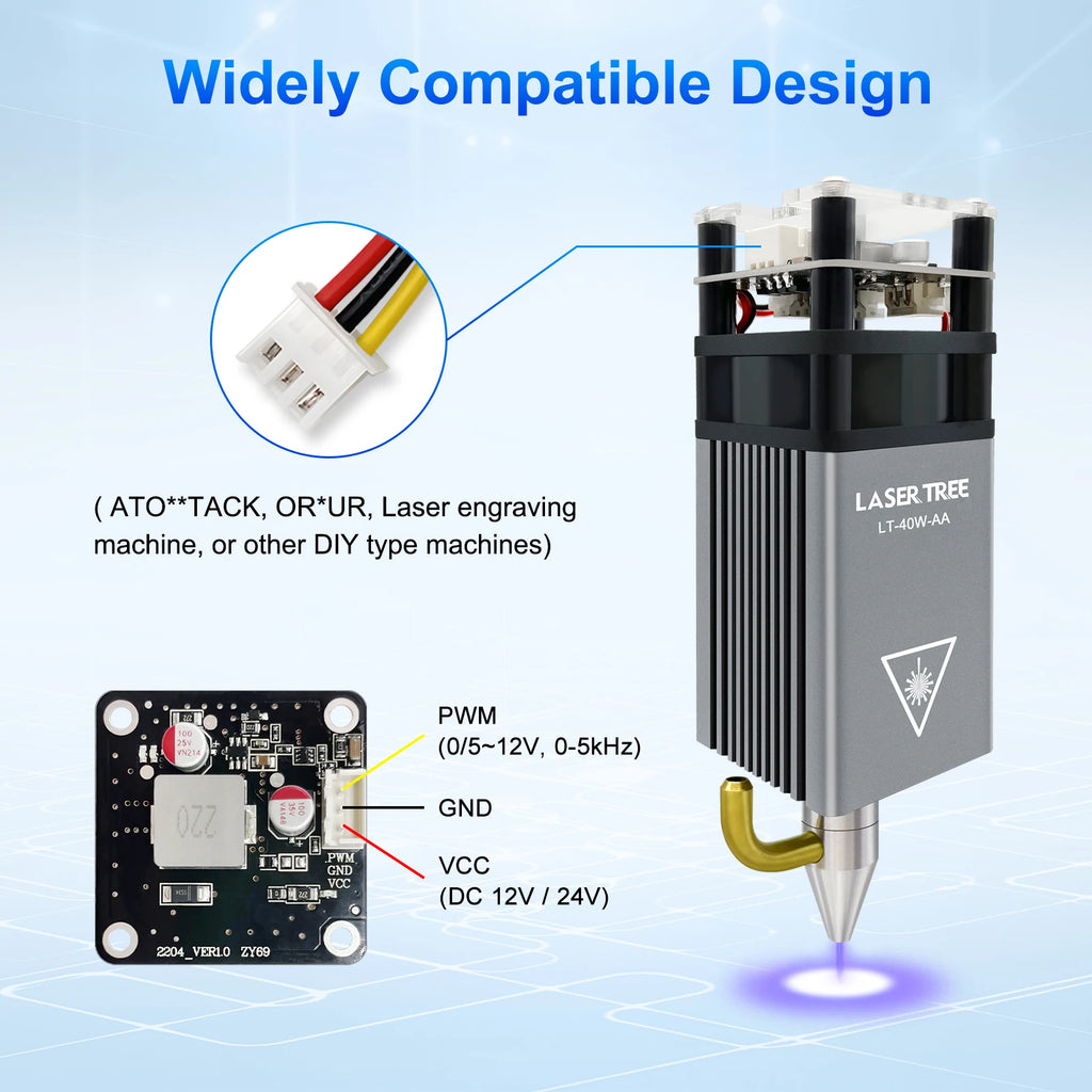 LASER TREE 10W 5W 4W Laser Module, 450nm TTL Blue Light Laser Head for Laser Engraving Wood DIY Creation Tool