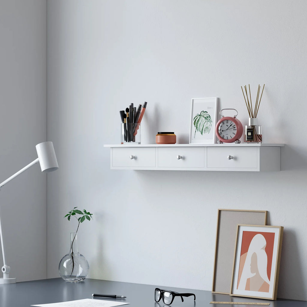 What you get: A floating wall shelf from SONGMICS with 3 drawers to add extra storage space to your home