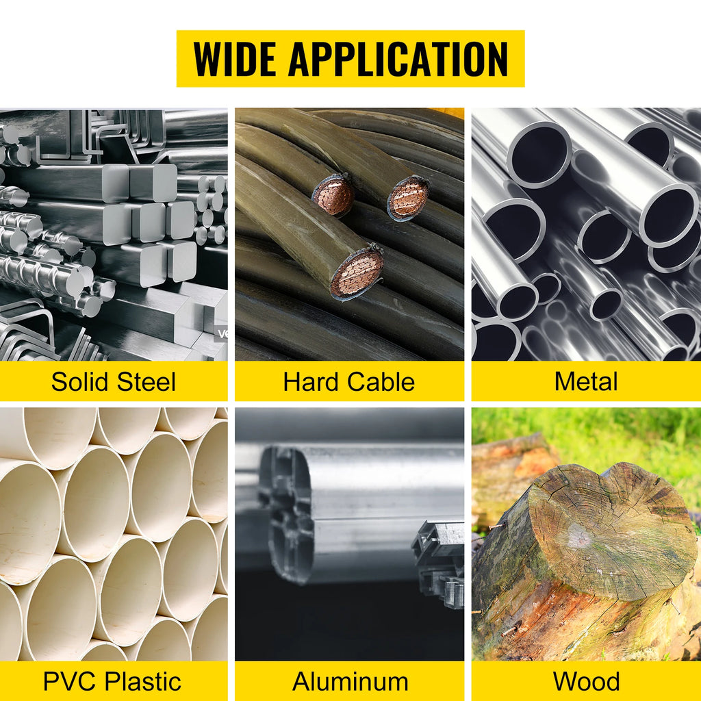 Versatile Applications: Ideal for cutting various materials such as metal, steel, aluminum, composite cable, angle iron, and PVC pipe.